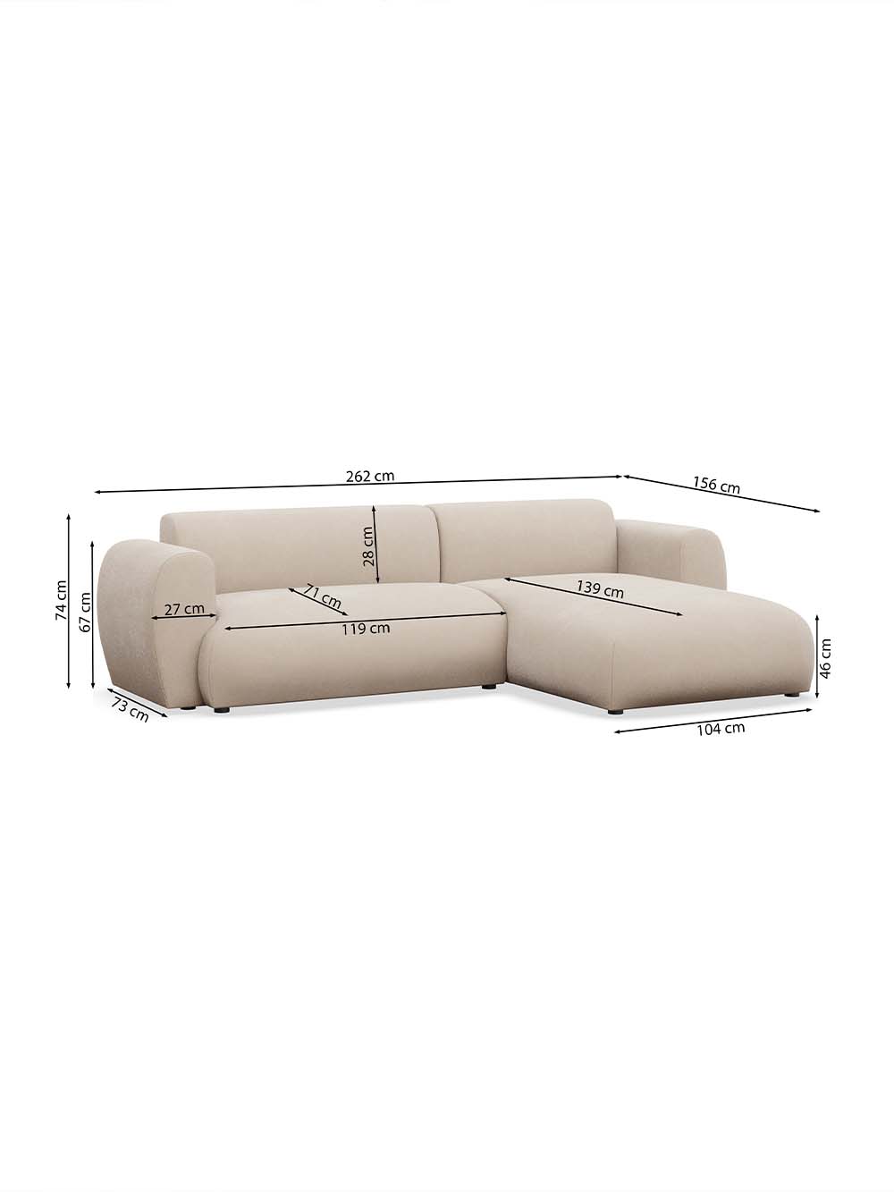 Išoriniai baldo matmenys: plotis / gylis / aukštis: 262 / 156 / 74 cm.