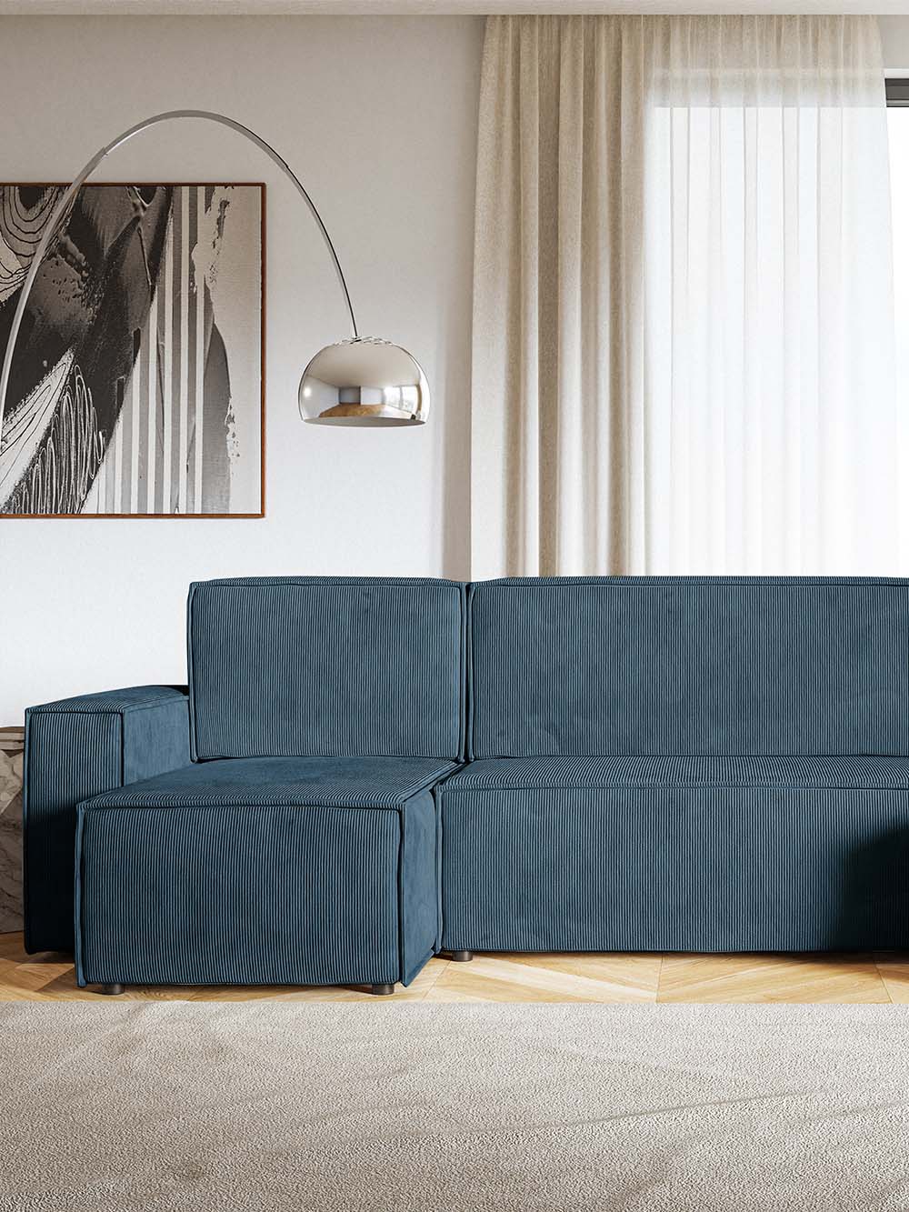 Apie audinį: Scala – velveto tipo audinys su stambia, reljefine tekstūra, suteikiančia baldui jaukumo ir išraiškingumo. Minkštas ir malonus liesti paviršius užtikrina komfortą kasdien naudojant. Audinys yra tvirtas, atsparus trinčiai ir pasižymi mažu polinkiu burbuliuotis. Dėl šių savybių jis ilgą laiką išlaiko tvarkingą ir estetišką išvaizdą.