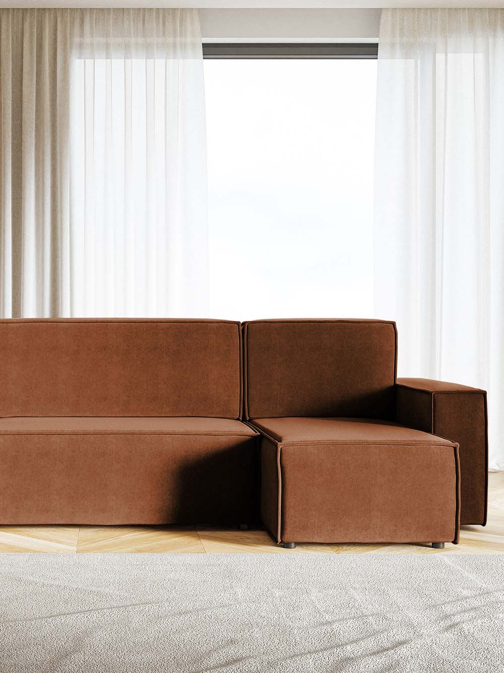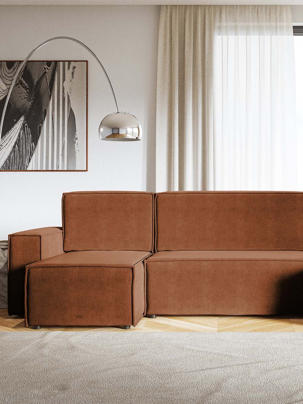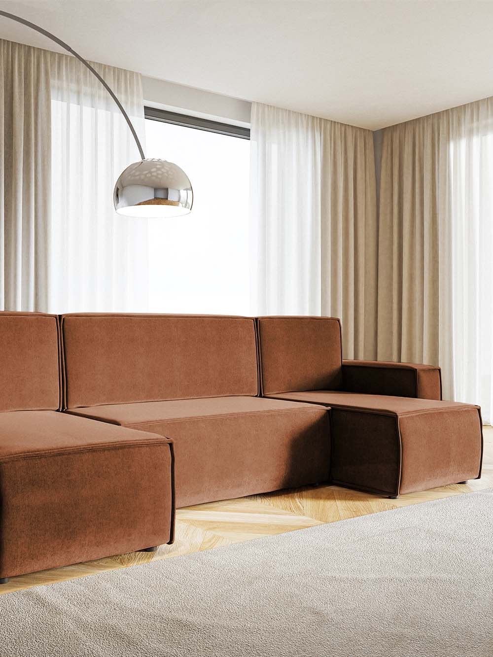 Apie audinį: Amon – švelnus veliūro tipo audinys su lengvu, subtiliu blizgesiu. Jo paviršius minkštas ir malonus liesti, lengvai atspindi šviesą. Audinys yra tvirtas ir atsparus intensyviam naudojimui, todėl puikiai tinka kasdieniams baldams. Dėl hidrofobinės „Water Stop“ technologijos, skysčiai lėčiau įsigeria, todėl audinį lengva prižiūrėti ir išlaikyti tvarkingą išvaizdą.