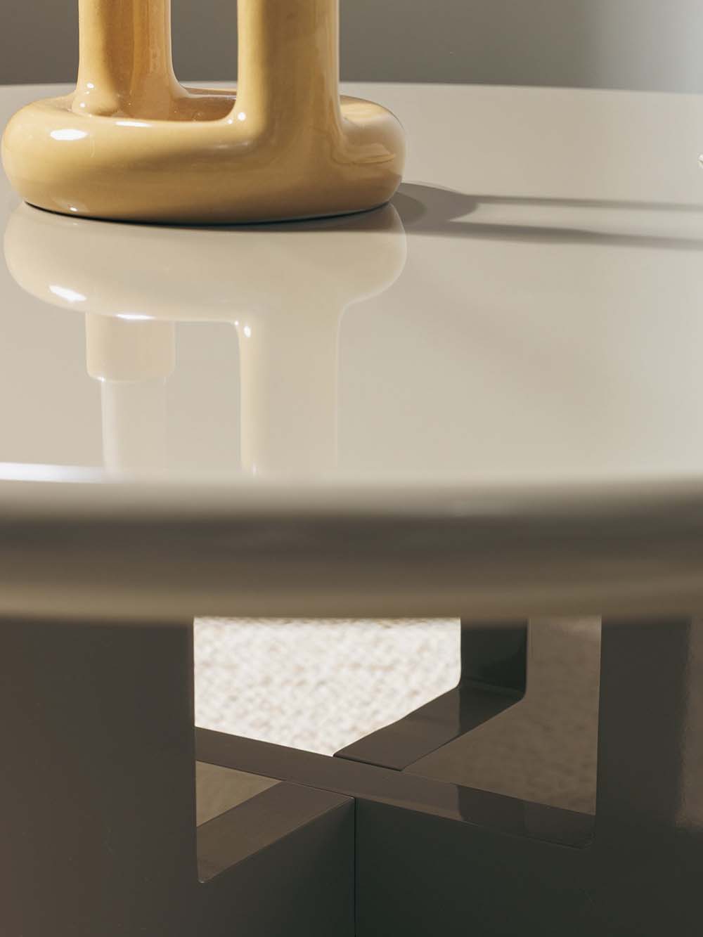 Priežiūra: Blizgūs paviršiai reikalauja švelnios priežiūros, nes yra jautresni įbrėžimams ir pažeidimams. Siekiant išvengti įbrėžimų, rekomenduojama naudoti padėkliukus ar apsauginius kilimėlius po statomais daiktais. Valykite minkšta, drėgna mikropluošto šluoste, venkite šiurkščių medžiagų ir stiprių cheminių priemonių. Laikykite baldą atokiau nuo tiesioginių saulės spindulių. Jei reikia, naudokite švelnius priežiūros preparatus, skirtus lakiniams arba aukšto blizgesio paviršiams (be vaško priedų).