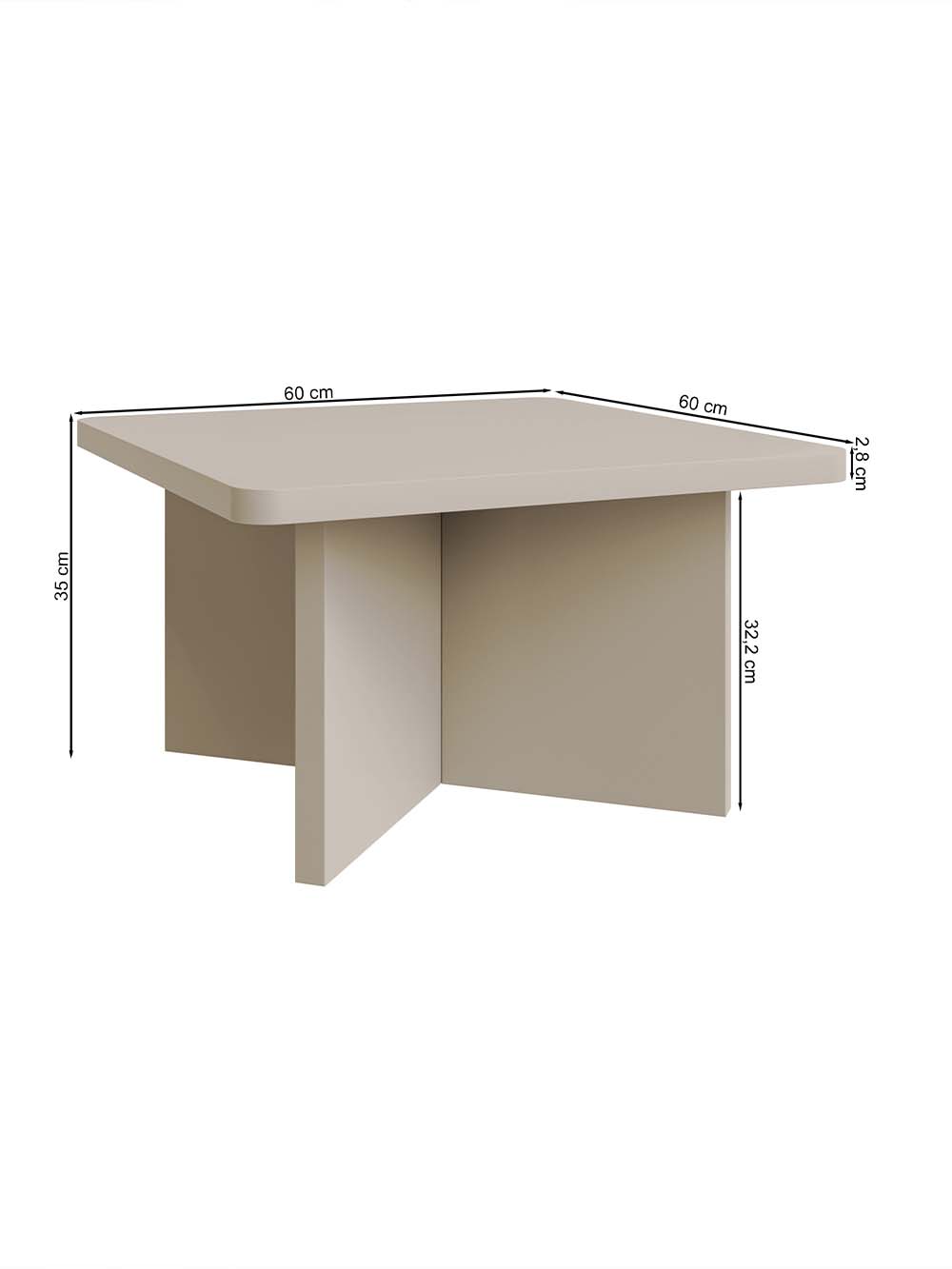 Išoriniai baldo matmenys: ilgis / plotis / aukštis, cm: 60 / 60 / 35.