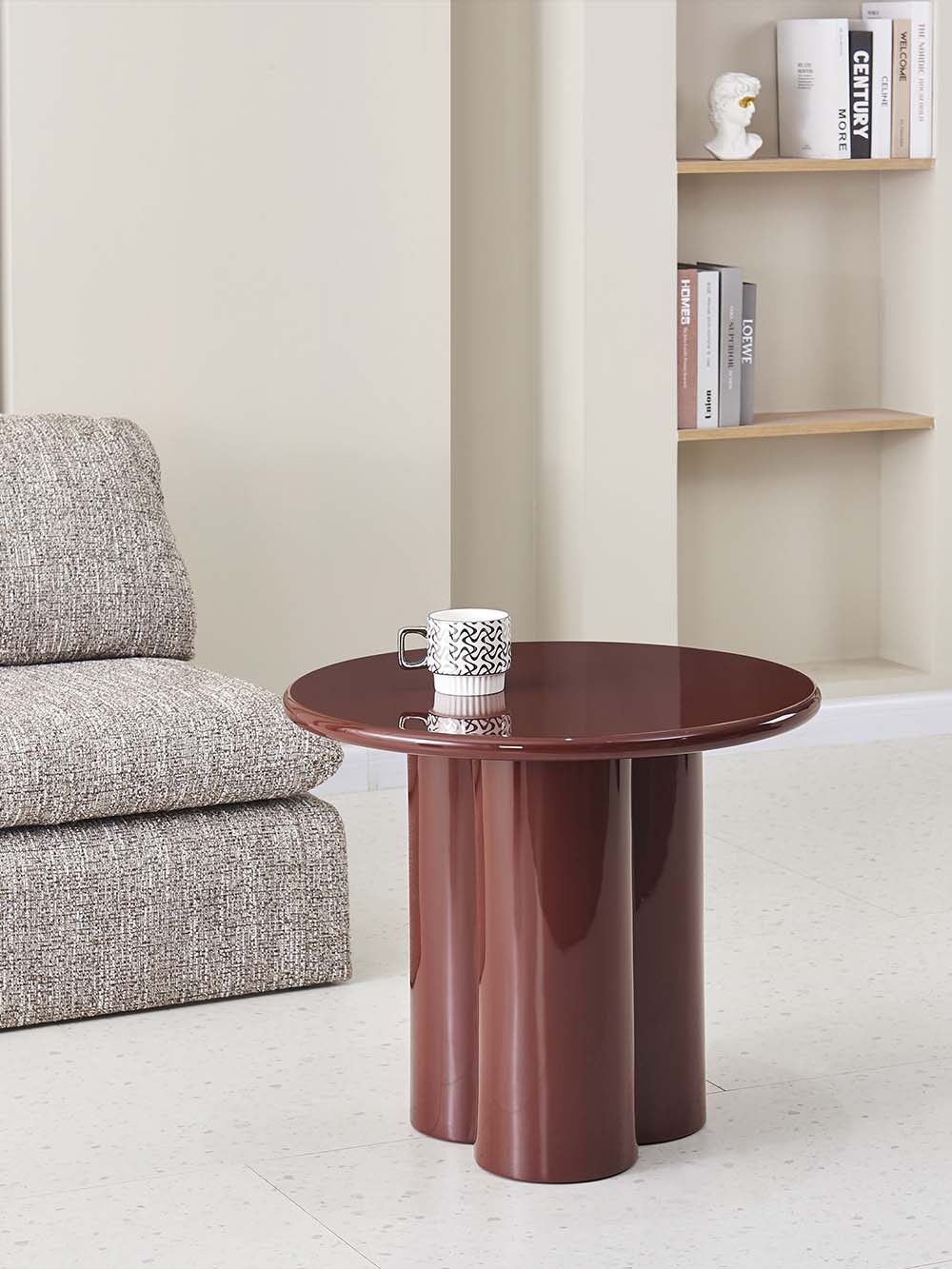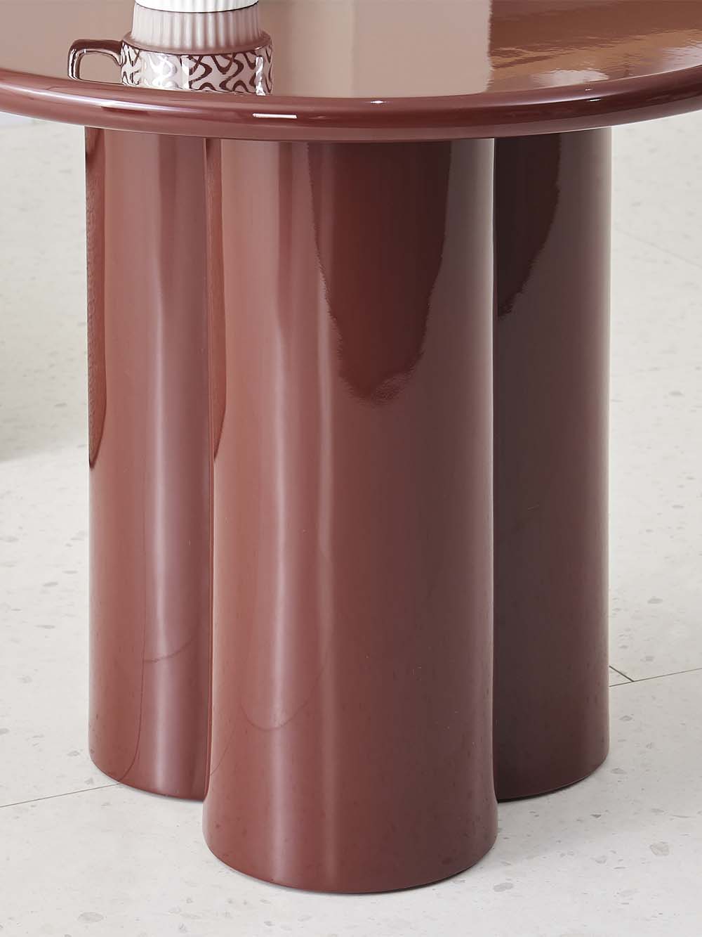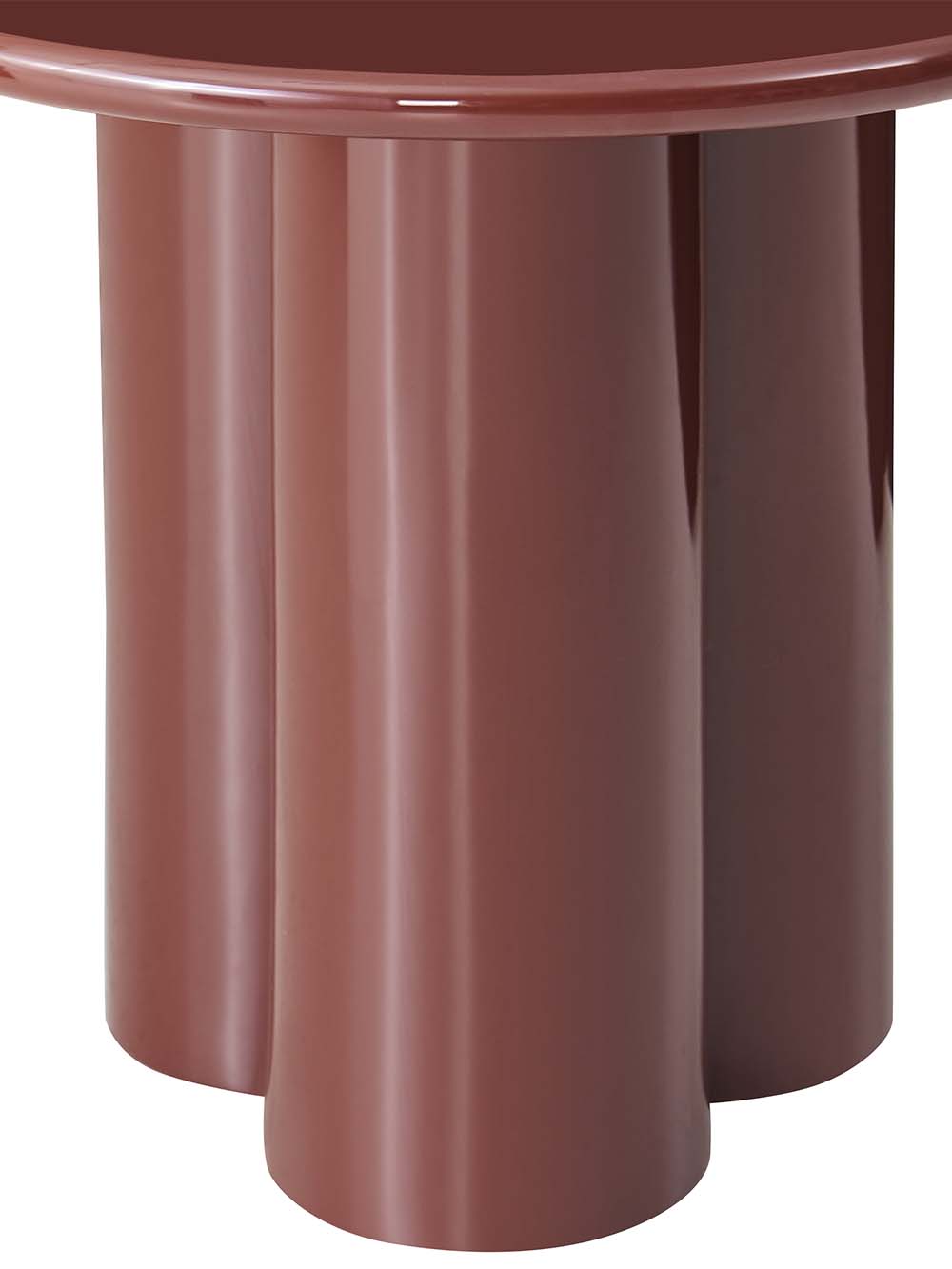 Kavos staliukas Melvo – tai šiuolaikiško dizaino baldas su išraiškingomis, apvaliomis formomis ir skulptūrišku pagrindu. Rausvai rudos spalvos blizgus paviršius suteikia šilumos ir subtilios prabangos pojūtį, o tvirta MDF konstrukcija užtikrina stabilumą kasdieniam naudojimui.