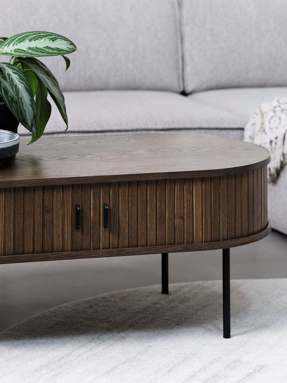 Baldų kolekcija Nala – tai šiuolaikiškų formų ir švelnių linijų derinys, kuriantis lengvą, harmoningą estetiką. Kolekciją išskiria apvalintos formos ir vertikalių linijų faktūra, suteikianti baldams subtilaus dinamiškumo. Natūraliu ąžuolo lukštu faneruota konstrukcija ir matiniai paviršiai užtikrina tvirtumą bei ilgaamžišką išvaizdą. Slankiojančios durelės gali būti pilnai atstumiamos, suteikdamos patogią prieigą prie visos vidinės erdvės ir leidžiančios ją išnaudoti maksimaliai. Nala puikiai tinka skandinaviškam ir minimalistiniam interjerui.