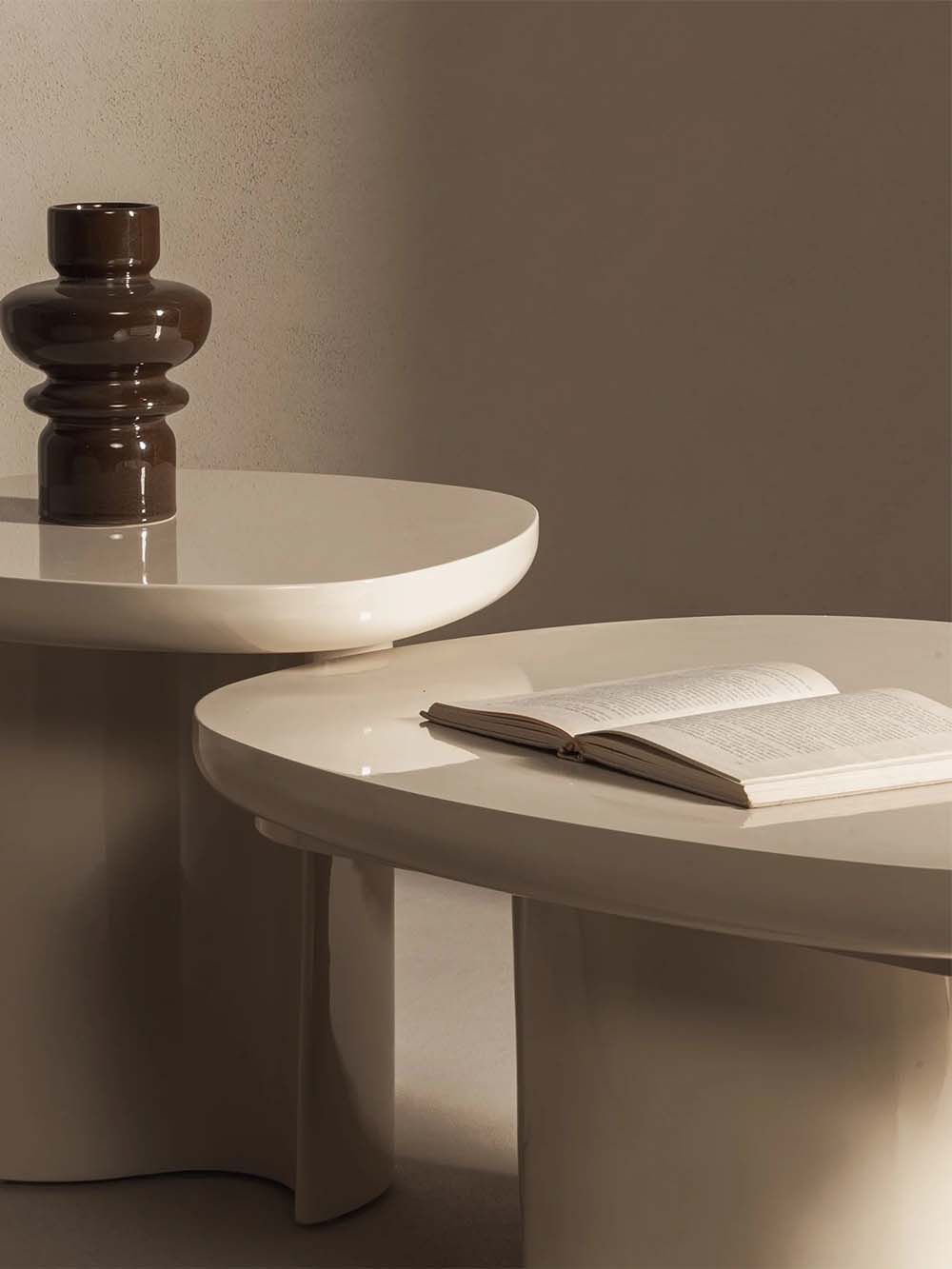 Priežiūra: Blizgūs paviršiai reikalauja švelnios priežiūros, nes yra jautresni įbrėžimams ir pažeidimams. Siekiant išvengti įbrėžimų, rekomenduojama naudoti padėkliukus ar apsauginius kilimėlius po statomais daiktais. Valykite minkšta, drėgna mikropluošto šluoste, venkite šiurkščių medžiagų ir stiprių cheminių priemonių. Laikykite baldą atokiau nuo tiesioginių saulės spindulių. Jei reikia, naudokite švelnius priežiūros preparatus, skirtus lakiniams arba aukšto blizgesio paviršiams (be vaško priedų).