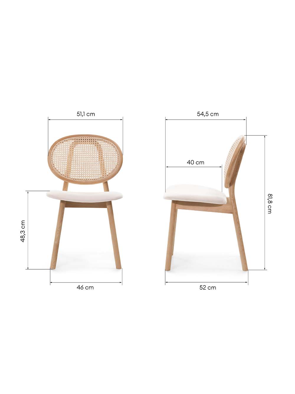 Išoriniai baldo matmenys: plotis / gylis / aukštis, cm: 51,1 / 54,5 / 81,8.
