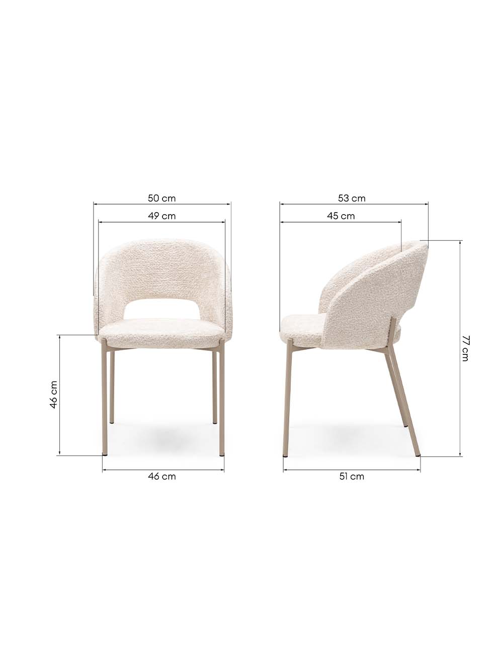 Išoriniai baldo matmenys: plotis / gylis / aukštis, cm: 50 / 53 / 77.