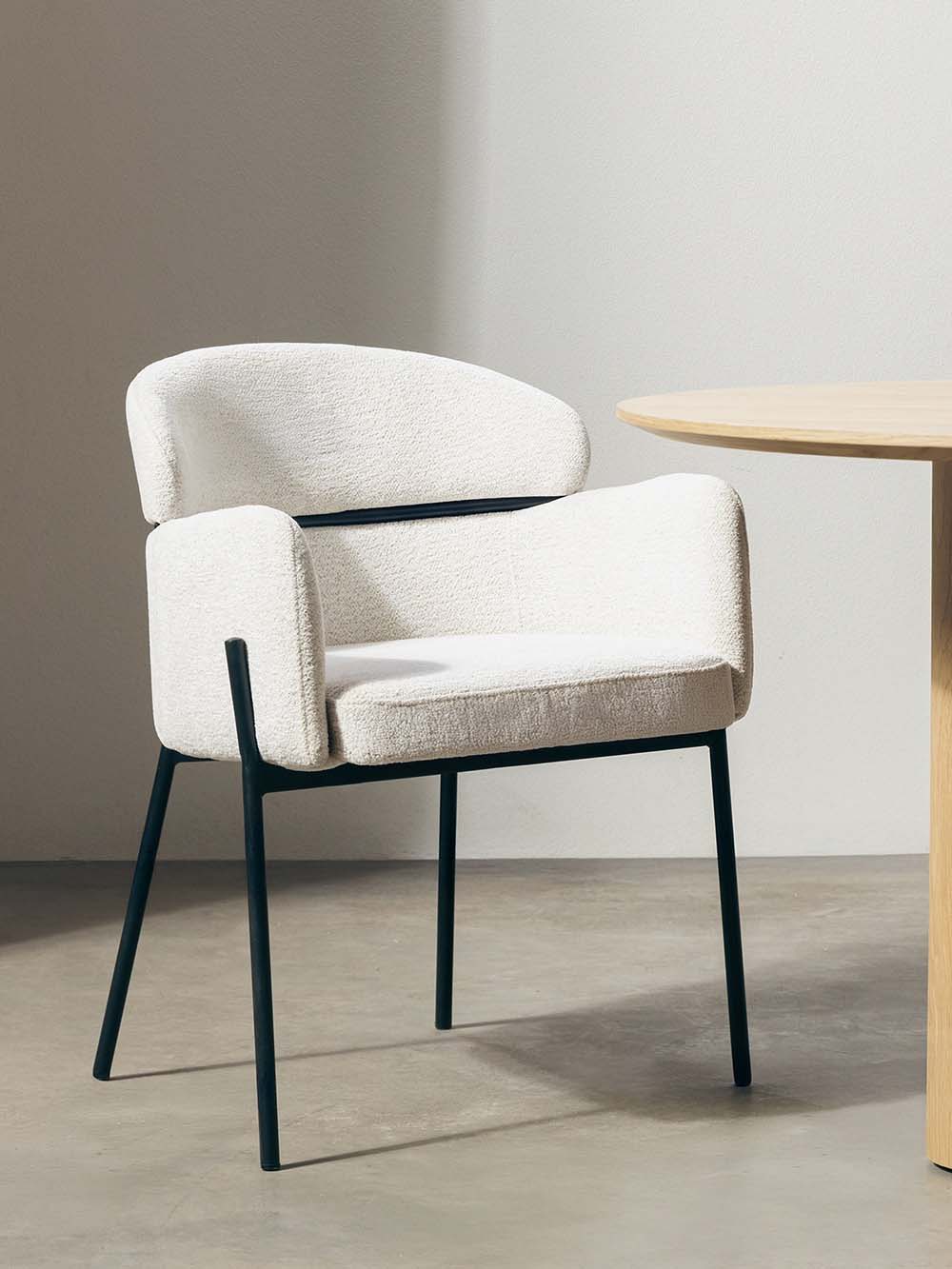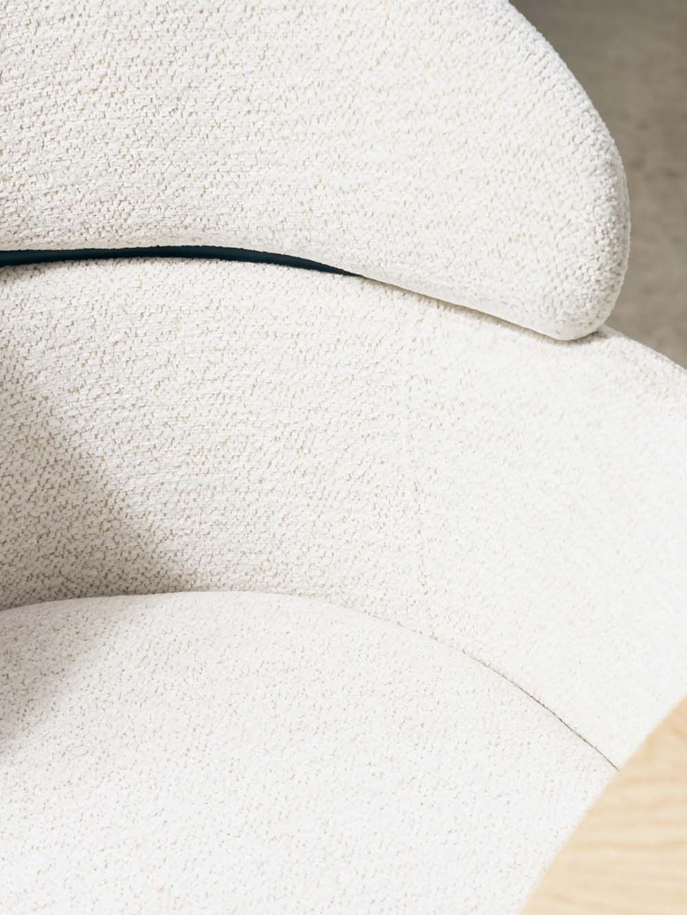 Audinio tipas: tai šenilinis audinys su juntama, struktūrine pynimo faktūra, suteikiančia paviršiui trimačio efekto ir subtilaus žvilgesio. Naudojant skirtingų atspalvių siūlus, audinyje išgaunamas lengvas melanžo efektas, todėl kiekvienas jo fragmentas atrodo unikalus. Audinys pasižymi atsparumu blukimui, nesivelia ir yra atsparus „pillingui“, todėl ilgai išlaiko estetinę išvaizdą net ir intensyviai naudojamas.