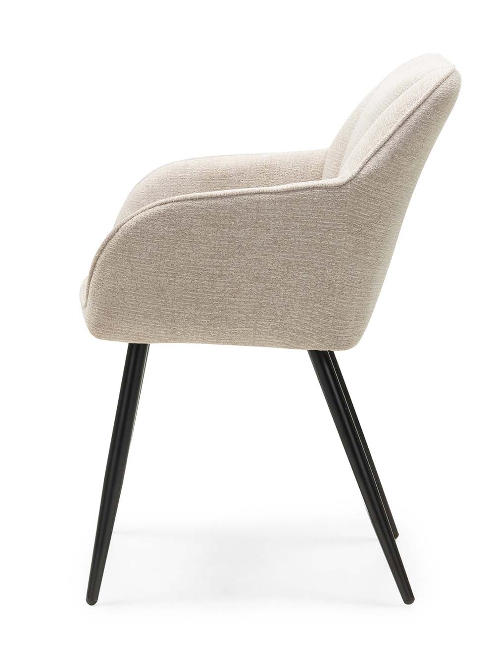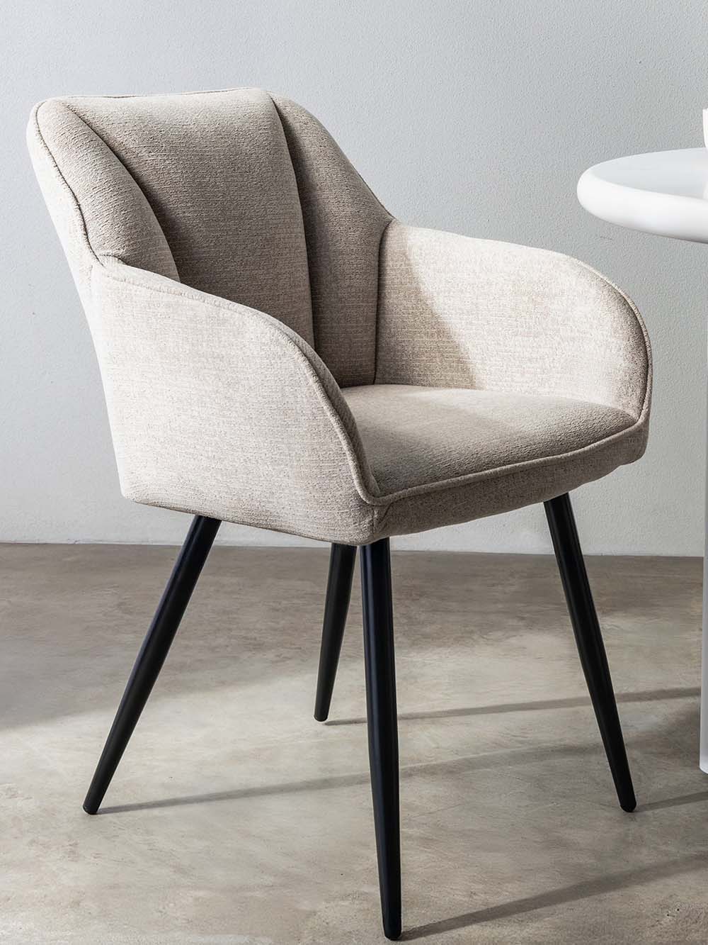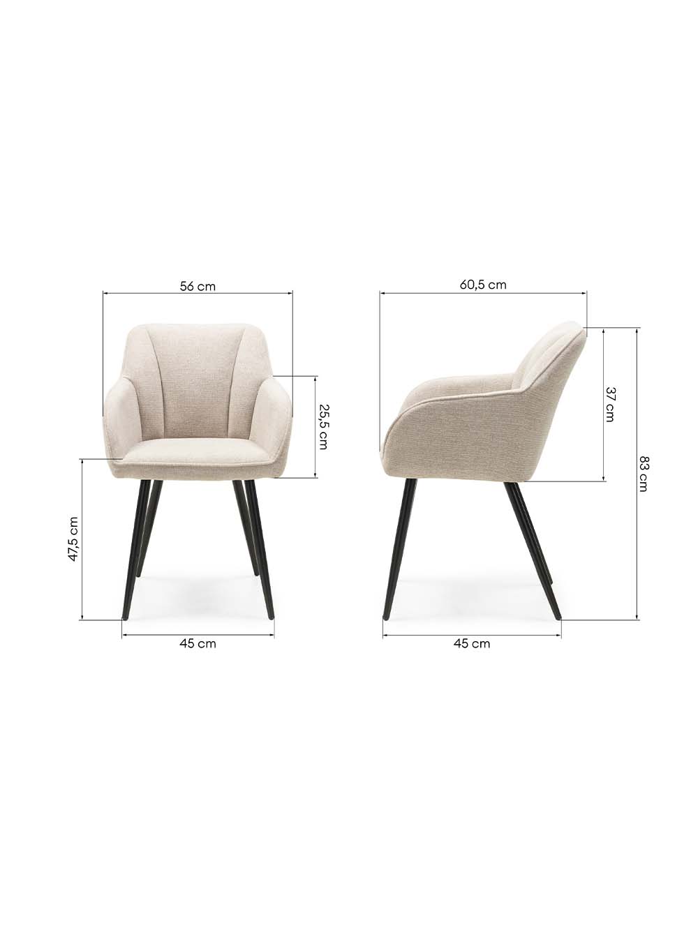 Kėdė Paris – elegantiškas baldas, derinantis modernų dizainą ir komfortą. Aptraukta švelniu smėlio spalvos audiniu. Ergonomiškai išformuotas atlošas ir minkšta sėdimoji dalis užtikrina ypatingą patogumą, o juodos spalvos metalinės kojelės suteikia stabilumo ir modernios estetikos.