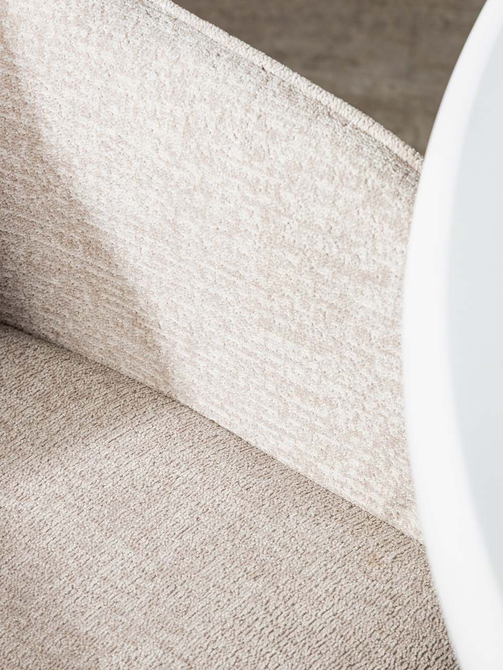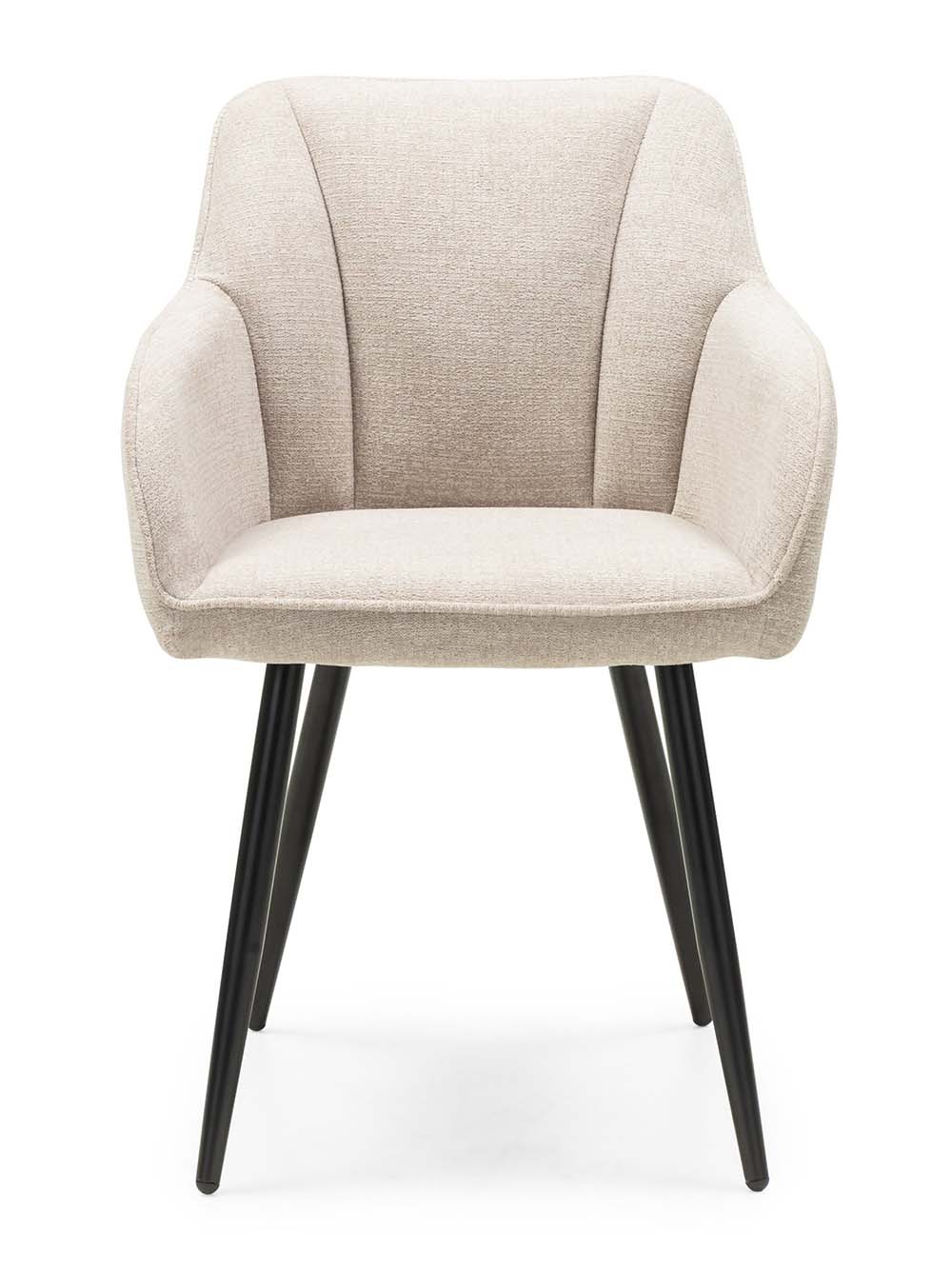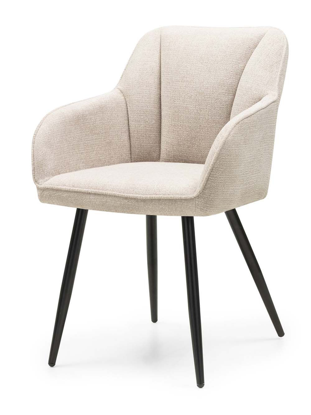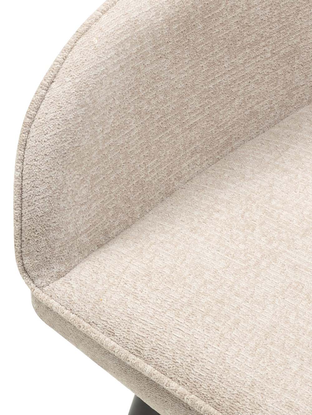 Kėdė Paris – elegantiškas baldas, derinantis modernų dizainą ir komfortą. Aptraukta švelniu smėlio spalvos audiniu. Ergonomiškai išformuotas atlošas ir minkšta sėdimoji dalis užtikrina ypatingą patogumą, o juodos spalvos metalinės kojelės suteikia stabilumo ir modernios estetikos.