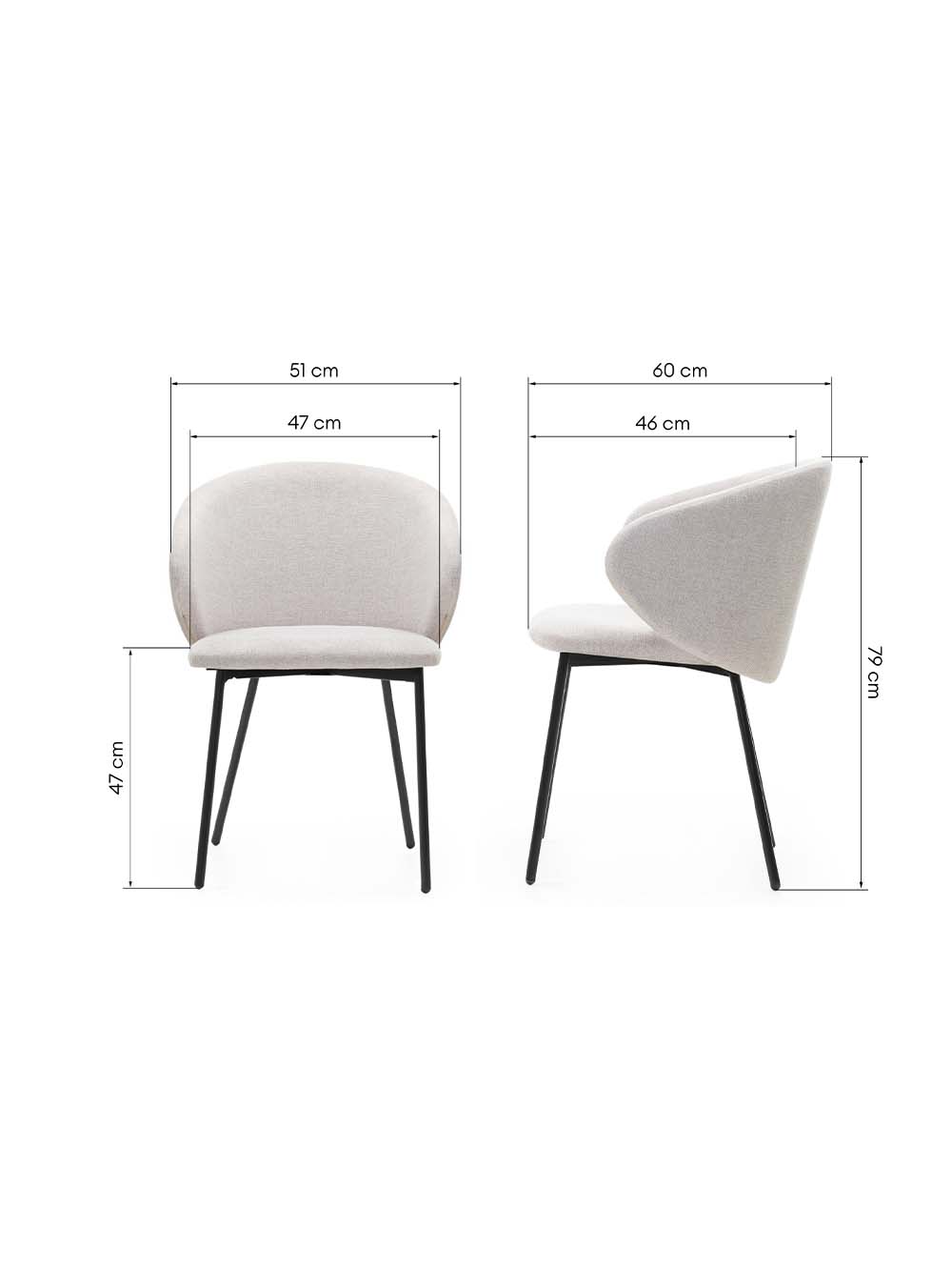 Išoriniai baldo matmenys: plotis / gylis / aukštis, cm: 51 / 60 / 79.