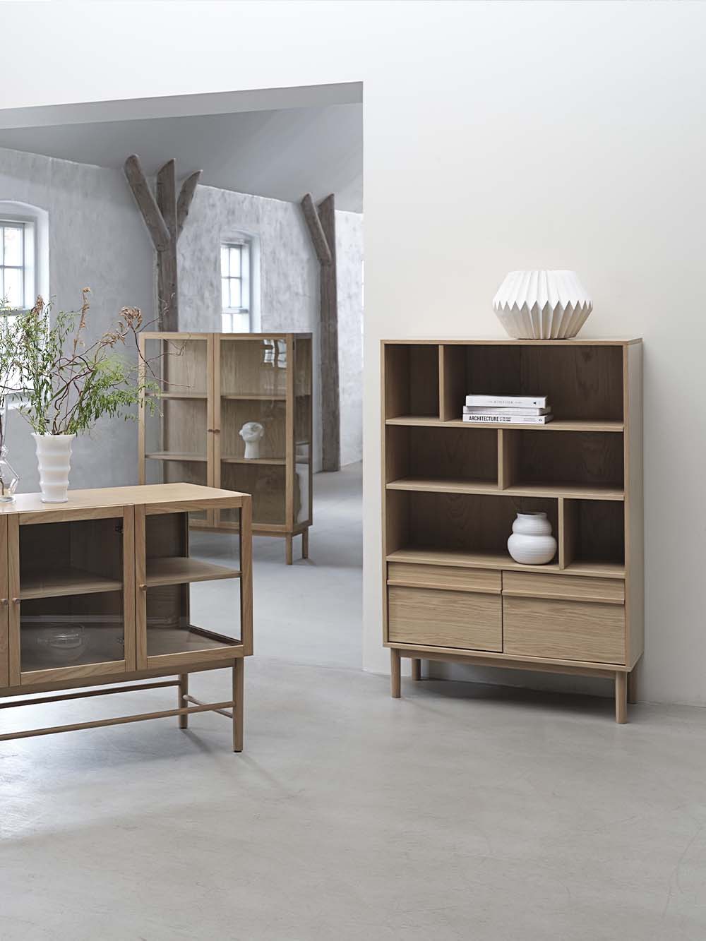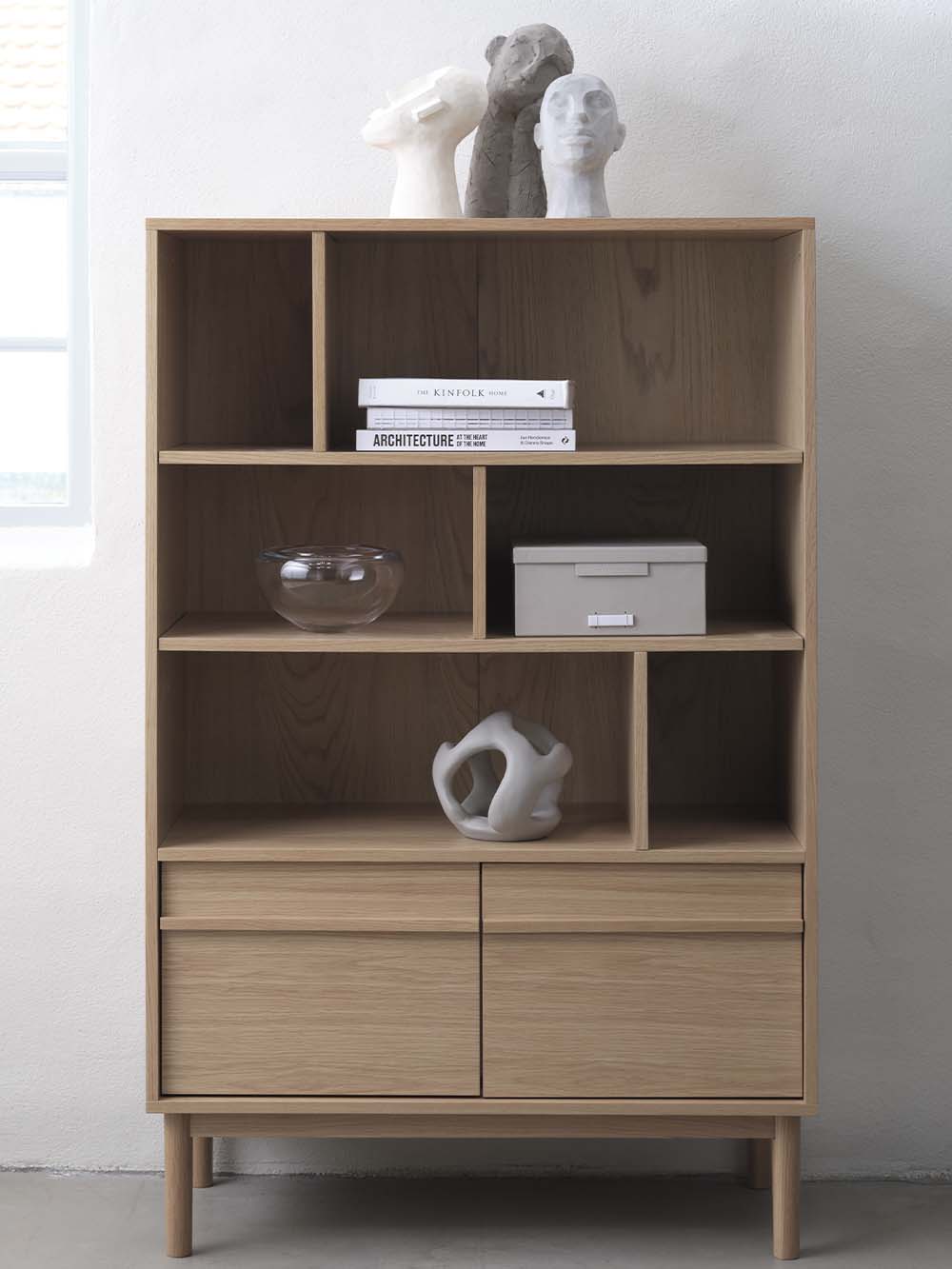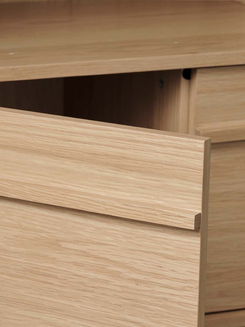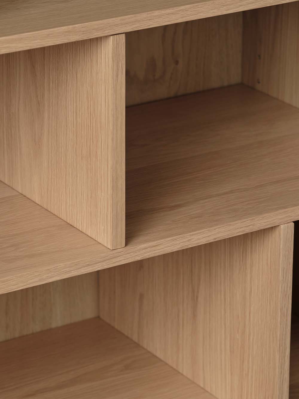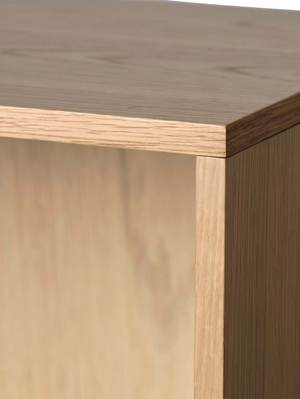 Korpuso medžiaga: natūraliu ąžuolo lukštu faneruota MDF plokštė.