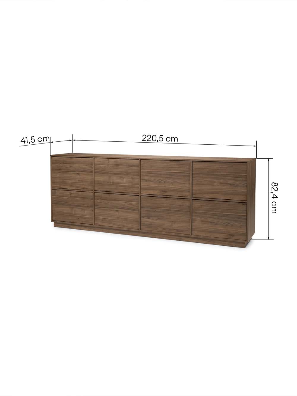 Išoriniai baldo matmenys: ilgis / plotis / aukštis, cm: 220,5 / 41,5 / 82,4.
