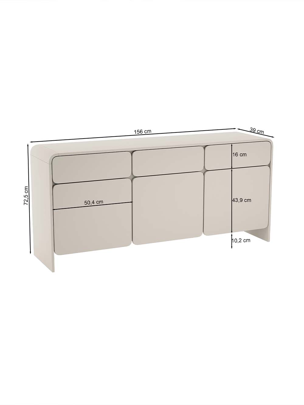 Išoriniai baldo matmenys: plotis / gylis / aukštis, cm: 156 / 39 / 72,5.