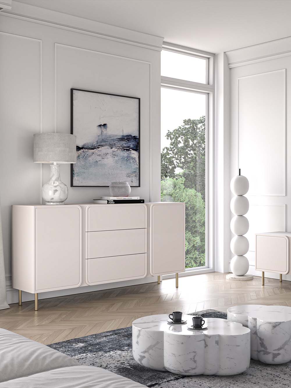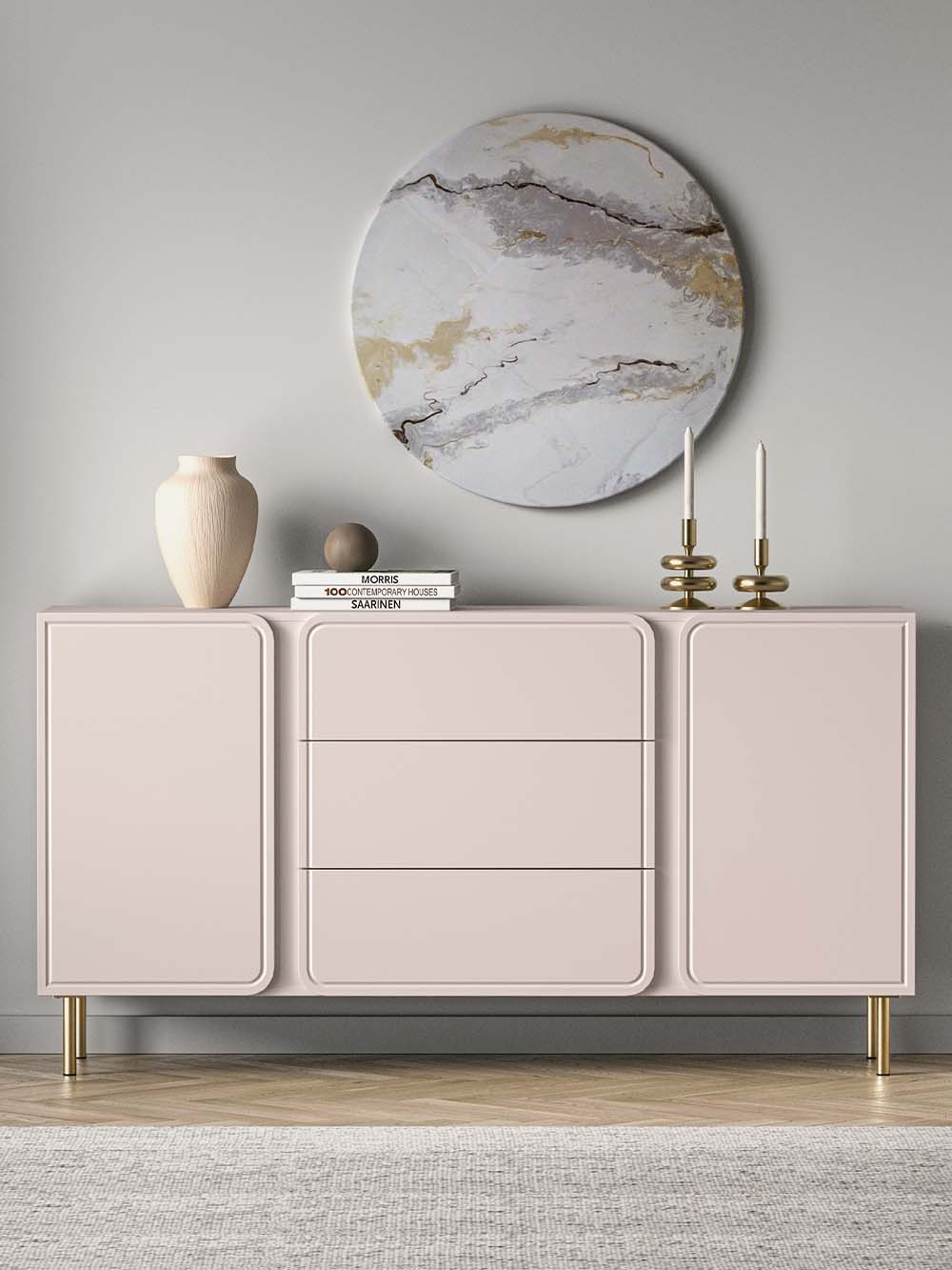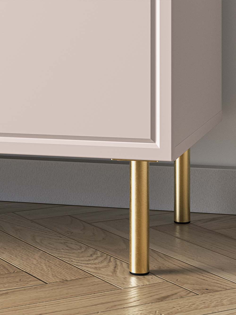 Baldų kolekcija Luso – tai šiuolaikiško dizaino kolekcija su subtiliai apvalintais kontūrais ir švelnia kašmyro spalva, kuri interjerui suteikia jaukumo ir prabangos pojūtį. Auksinės metalinės kojelės lengvai papildo dizainą ir tampa išskirtiniu akcentu. Subalansuotos proporcijos ir apgalvotas dizainas kuria vientisą, harmoningą visumą.