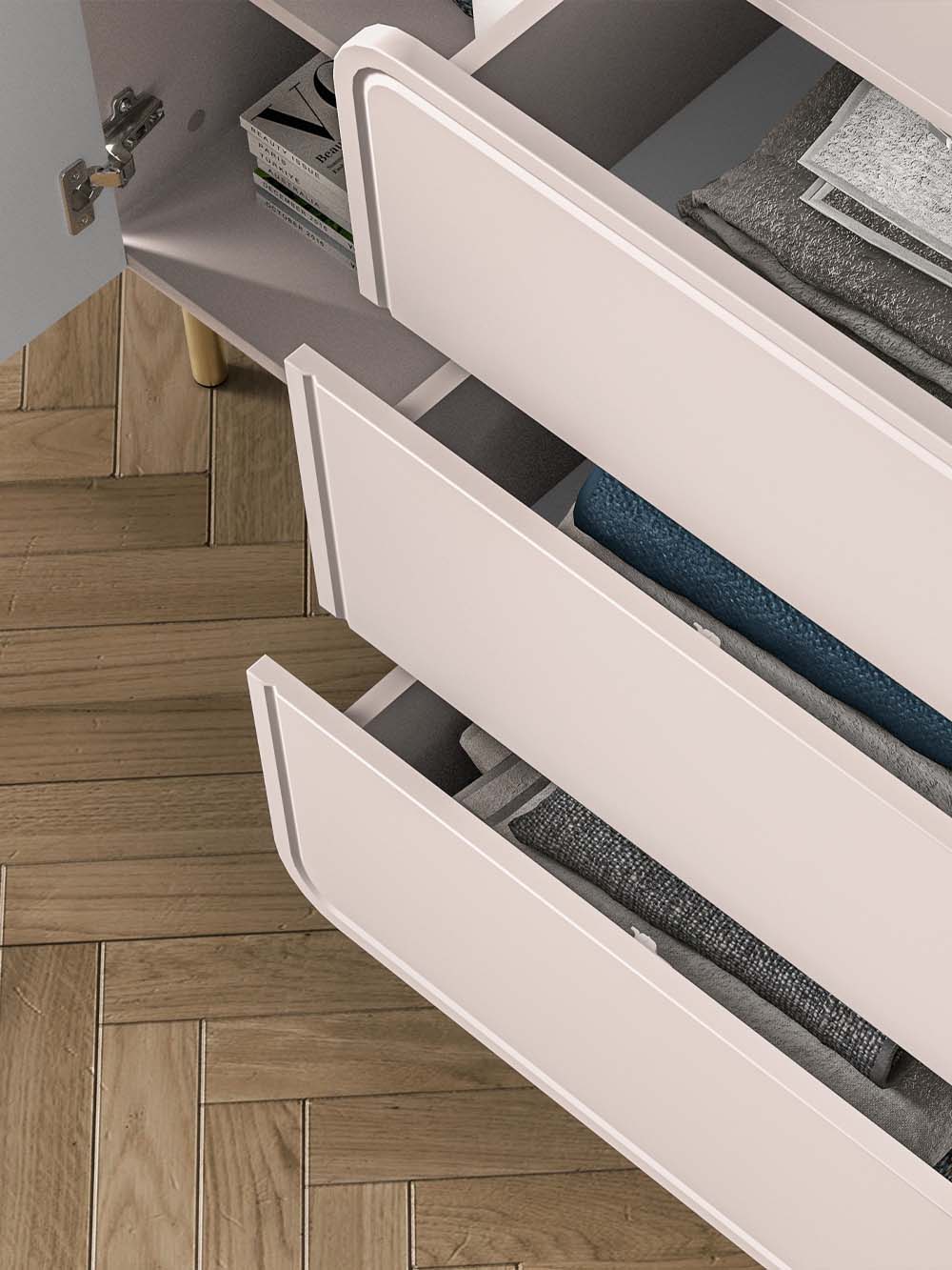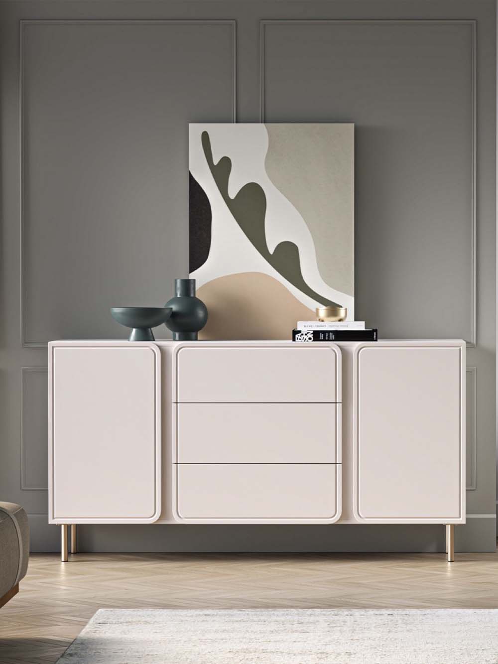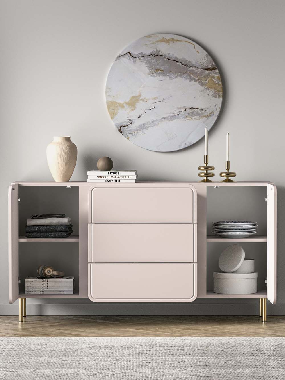 Baldų kolekcija Luso – tai šiuolaikiško dizaino kolekcija su subtiliai apvalintais kontūrais ir švelnia kašmyro spalva, kuri interjerui suteikia jaukumo ir prabangos pojūtį. Auksinės metalinės kojelės lengvai papildo dizainą ir tampa išskirtiniu akcentu. Subalansuotos proporcijos ir apgalvotas dizainas kuria vientisą, harmoningą visumą.