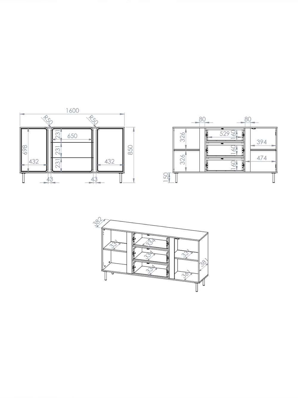 Išoriniai baldo matmenys CM: plotis / gylis / aukštis, 160 / 38,2 / 85.