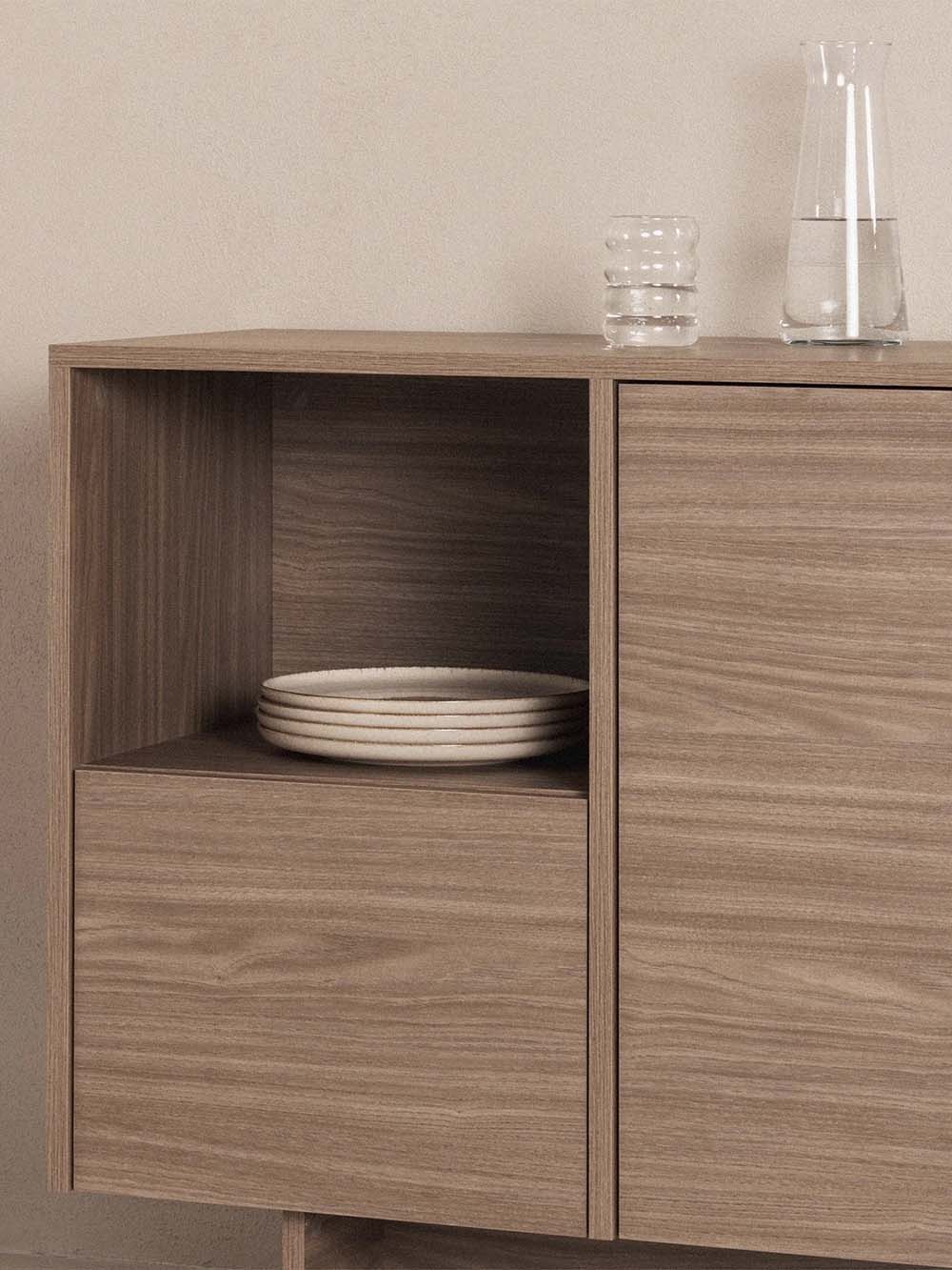 Korpuso medžiaga: 18 mm laminuota medžio drožlių plokštė.