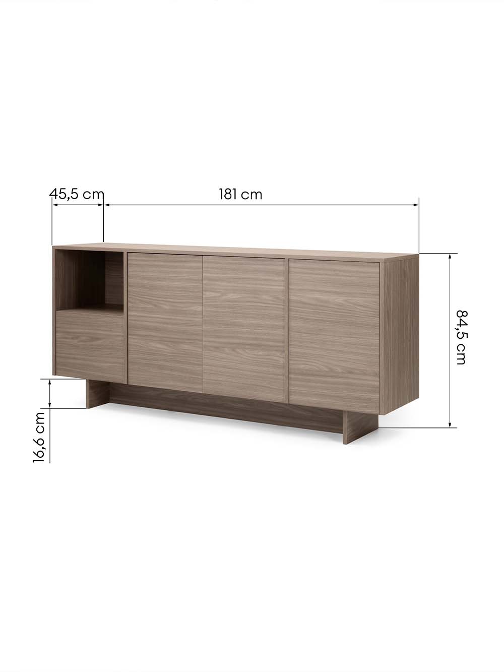 Išoriniai baldo matmenys: plotis / gylis / aukštis, cm: 181 / 45,5 / 84,5.