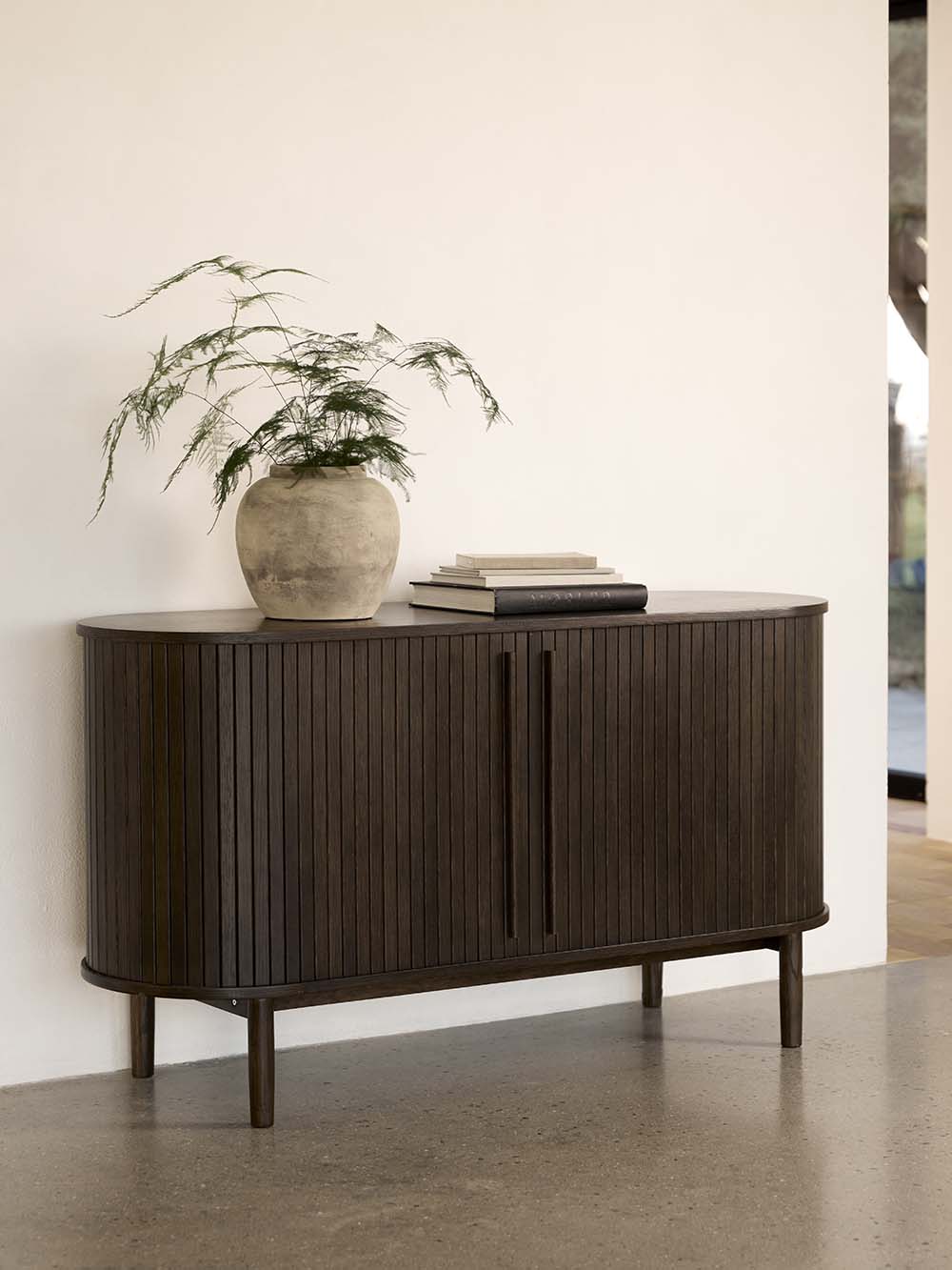 Korpuso medžiaga: natūraliu ąžuolo lukštu faneruota MDF plokštė.