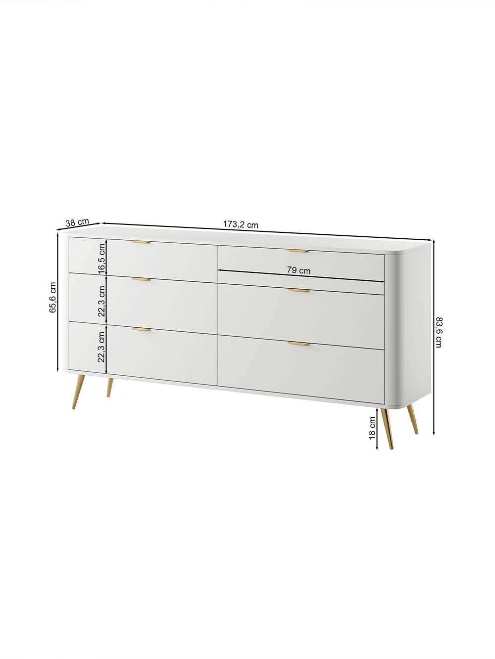 Išoriniai baldo matmenys CM: plotis / gylis / aukštis, 173,2 / 38 / 83,6.