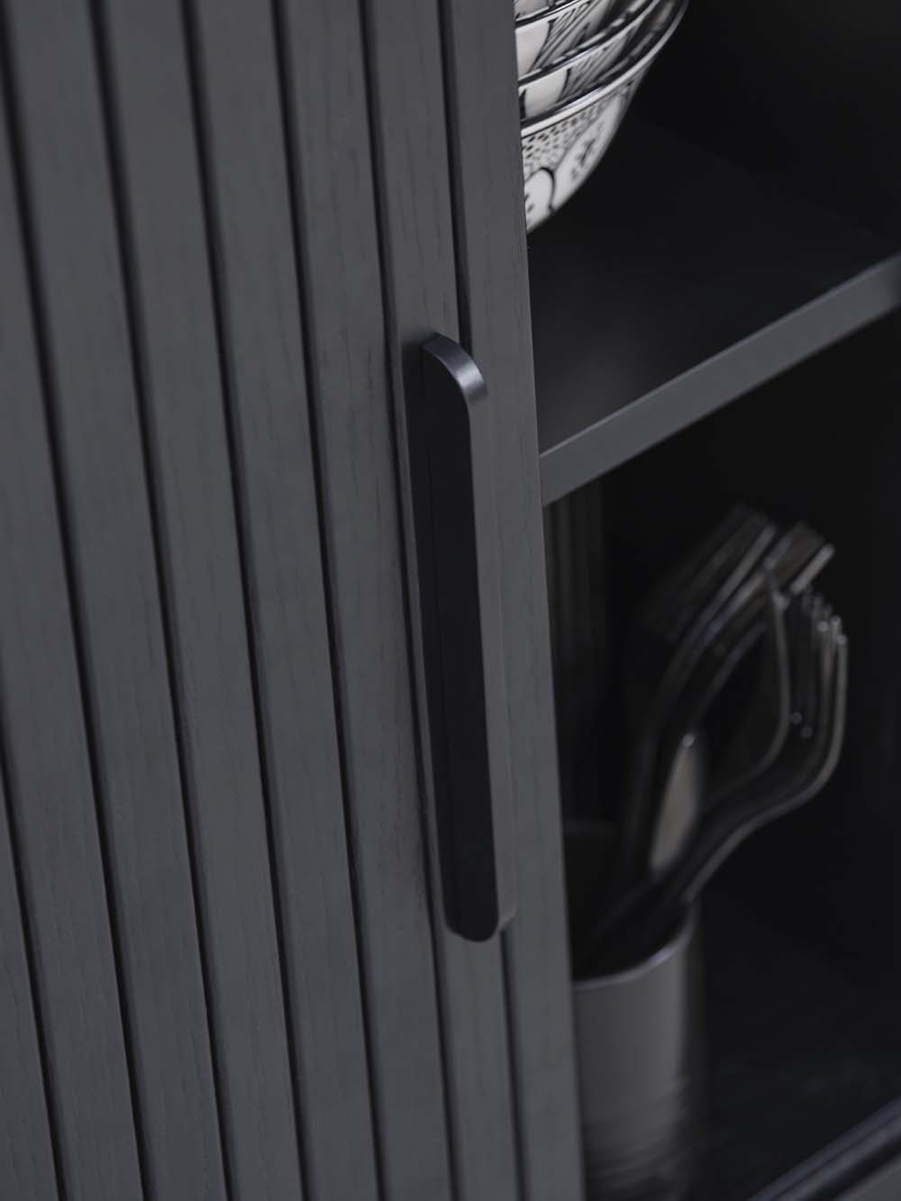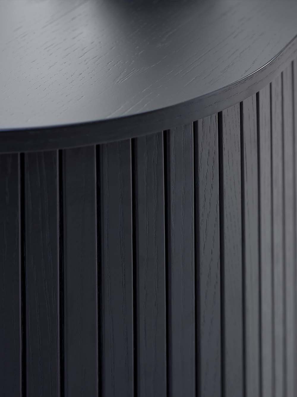Korpuso medžiaga: natūraliu ąžuolo lukštu faneruota MDF plokštė.
