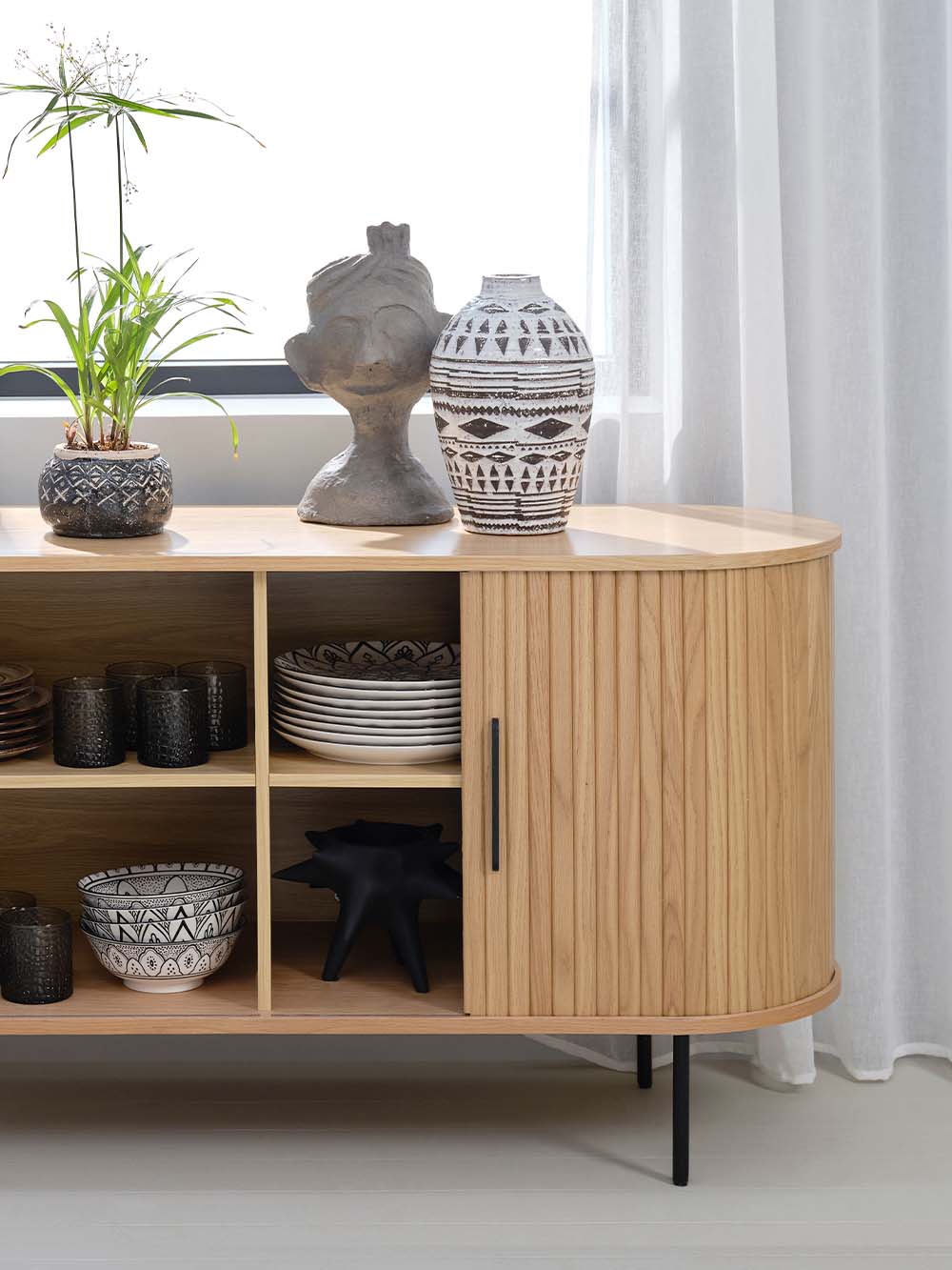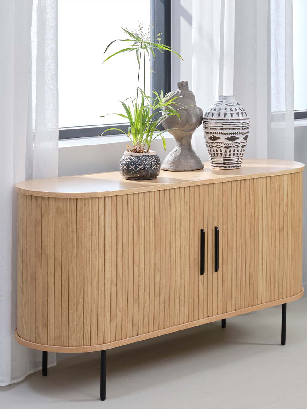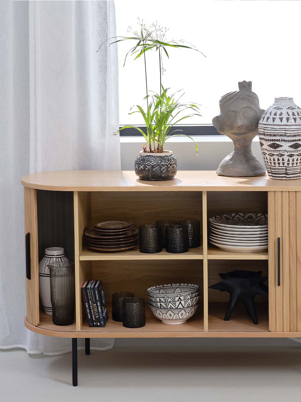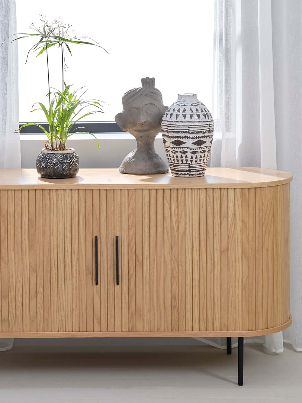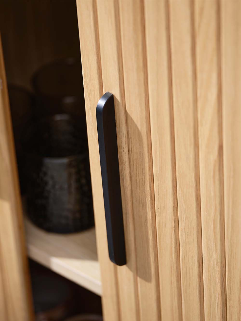 Korpuso medžiaga: natūraliu ąžuolo lukštu faneruota MDF plokštė.