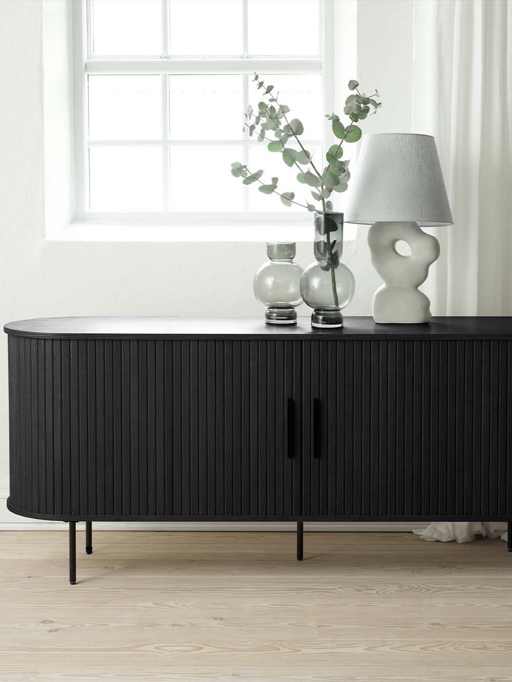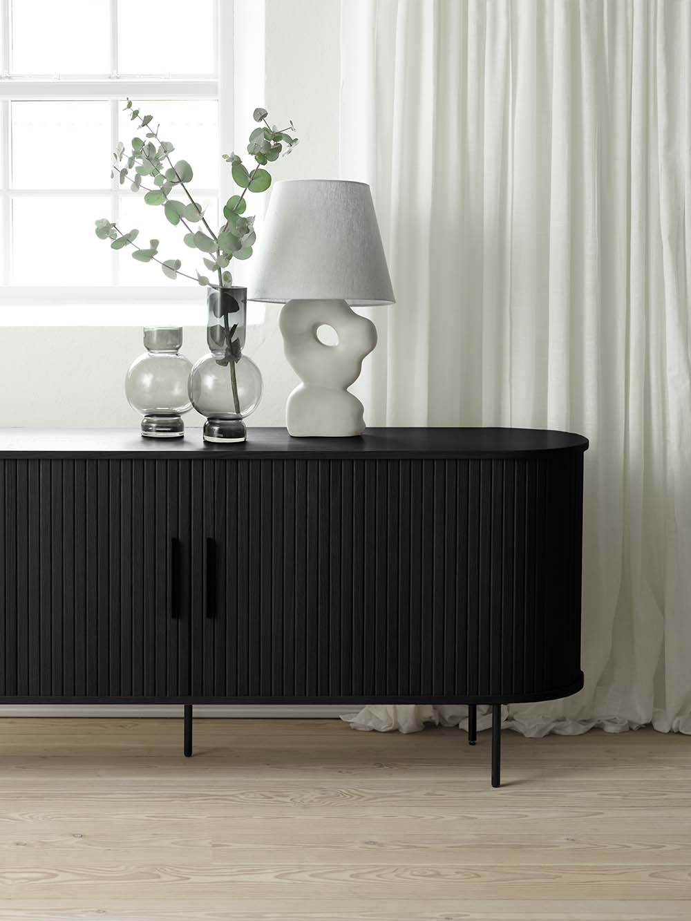 Korpuso medžiaga: natūraliu ąžuolo lukštu faneruota MDF plokštė.