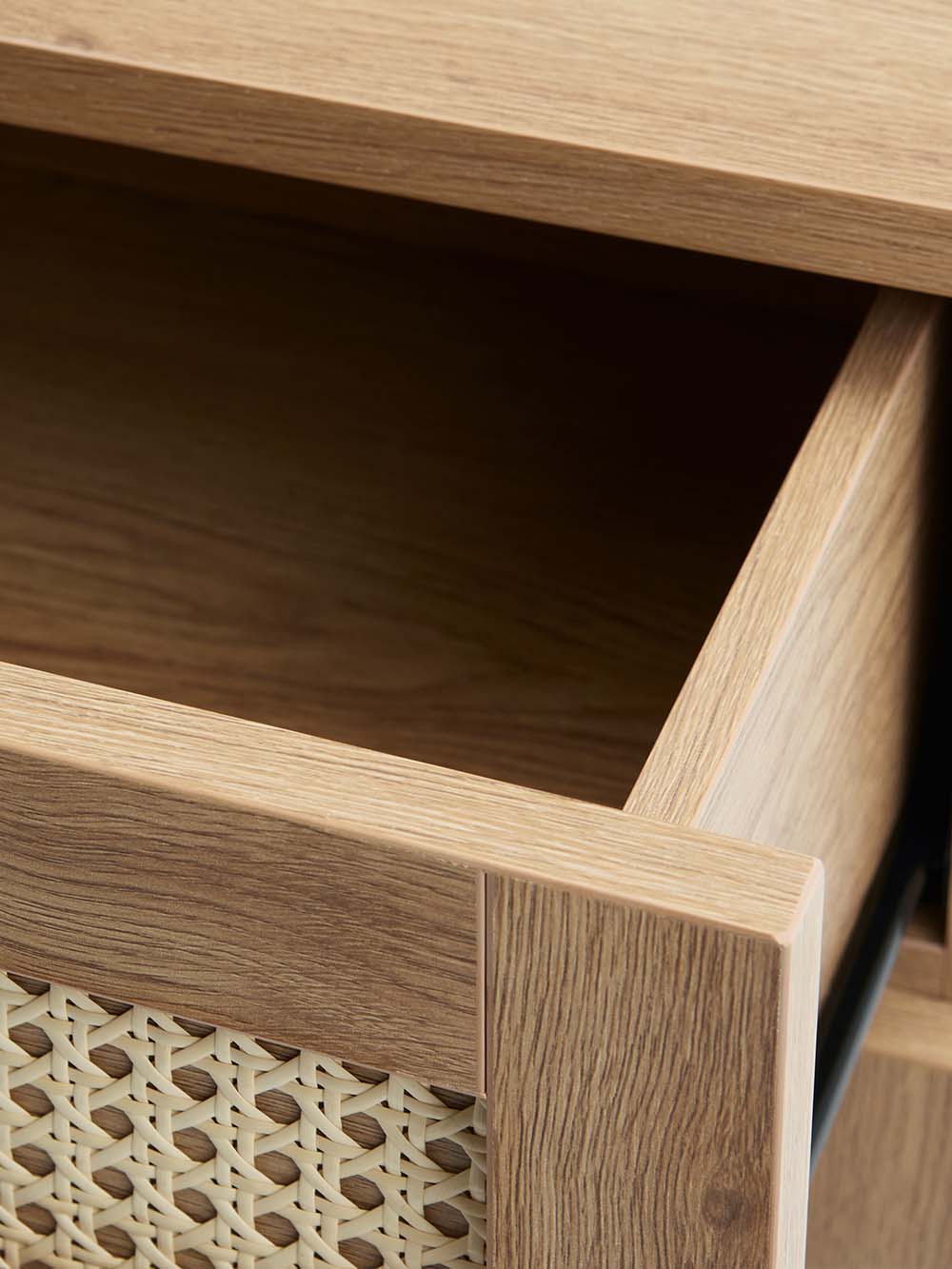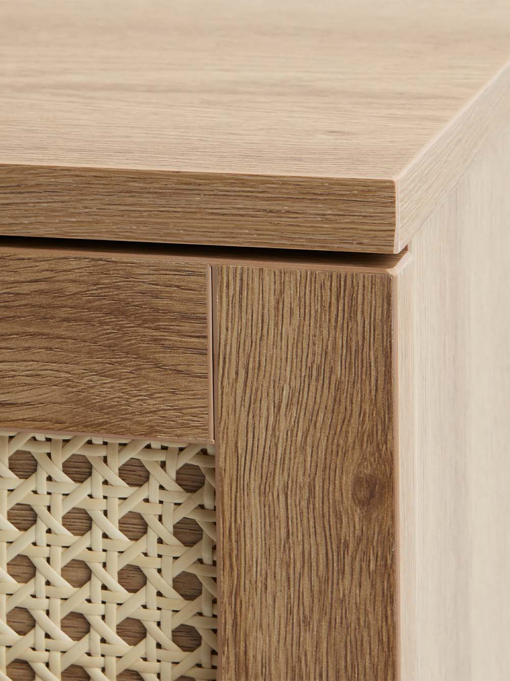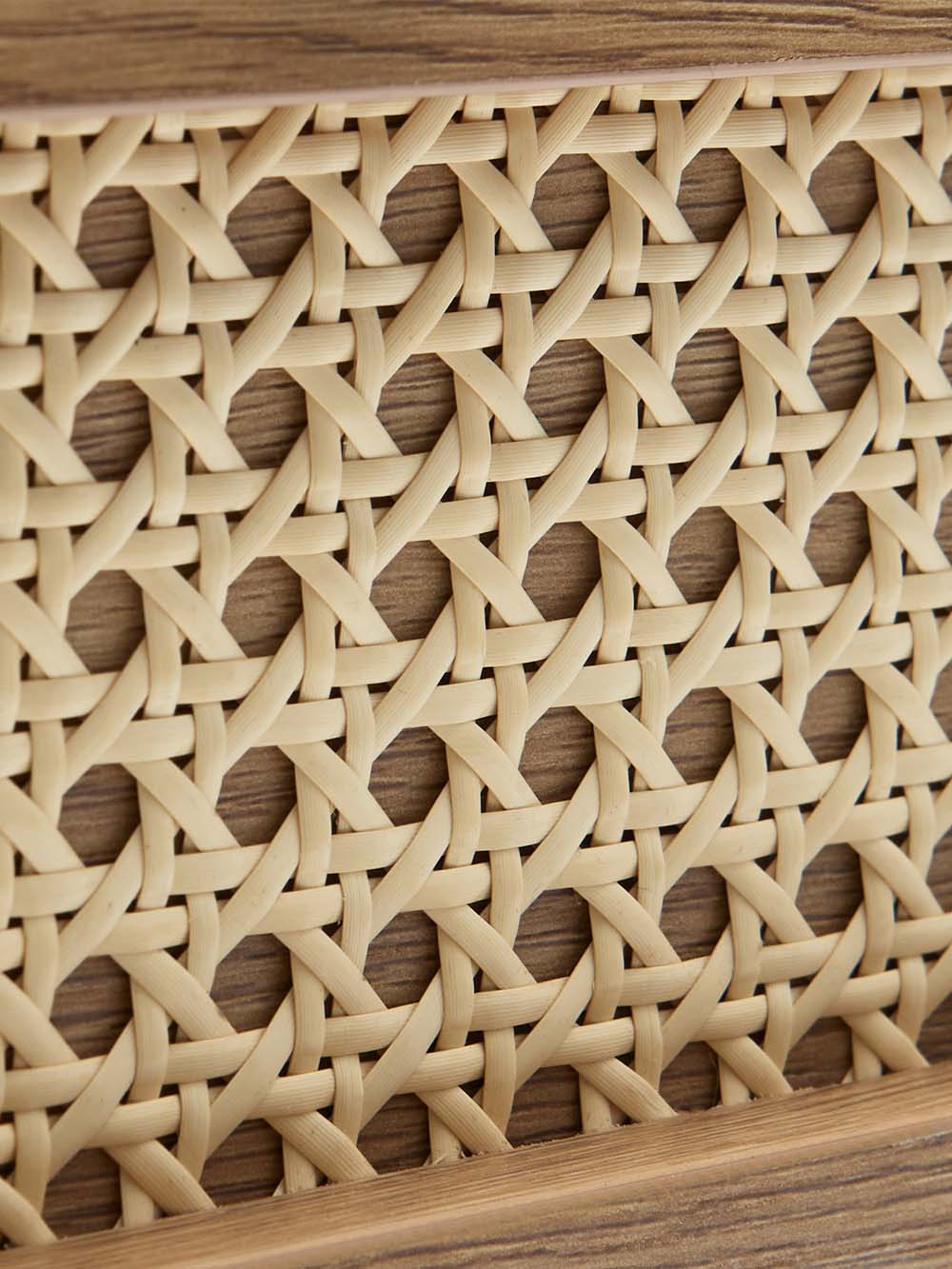 Korpuso medžiaga: laminuota MDF plokštė, dirbtinio ratano tinklelis.