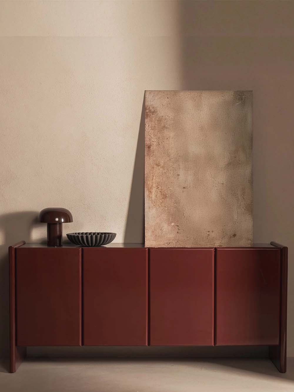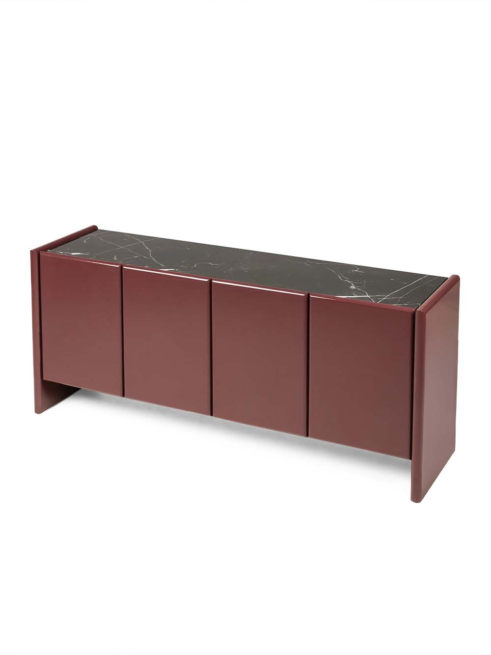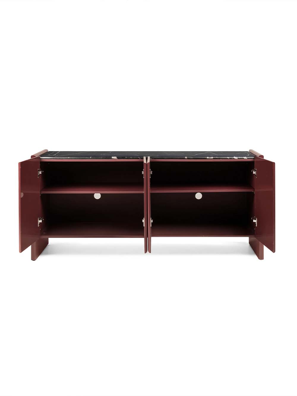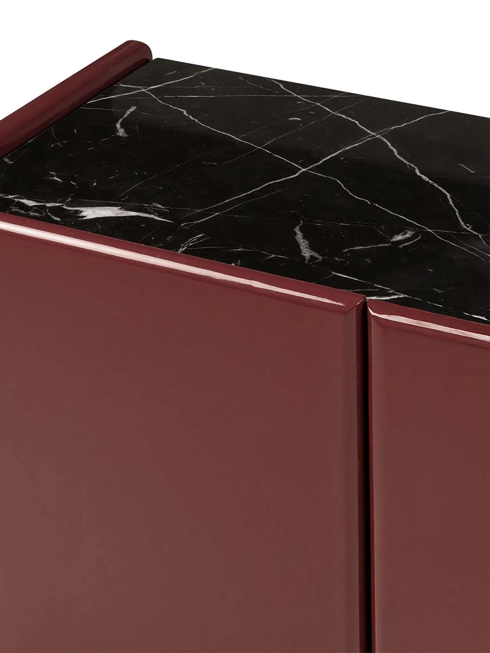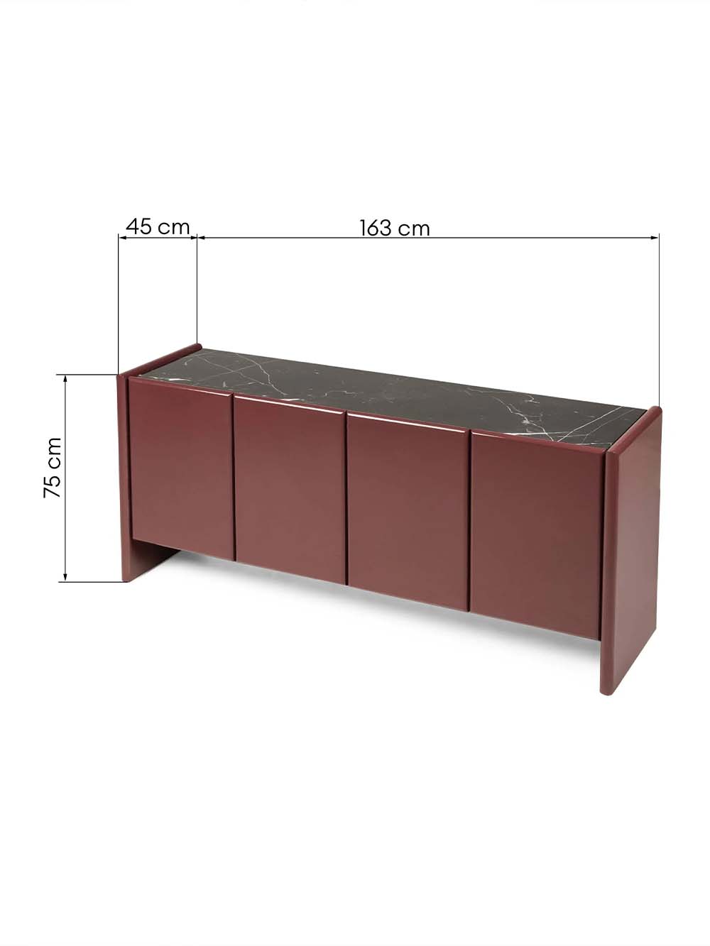 Komoda Rona – modernaus dizaino baldas, išsiskiriantis švaria estetika ir subtiliu siluetu. Rausvai ruda spalva su blizgia apdaila suteikia interjerui išskirtinumo ir šilto rafinuotumo, o juodo marmuro stalviršis kuria elegantišką kontrastą. Talpios spintelės leidžia patogiai laikyti daiktus ir palaikyti tvarką. Puikiai tinka moderniai ar šiuolaikinei svetainei, kur svarbus tiek stilius, tiek funkcionalumas.