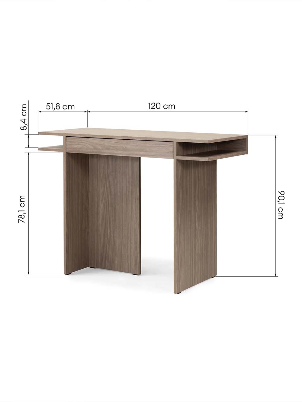 Išoriniai baldo matmenys: plotis / gylis / aukštis, cm: 120 / 51,8 / 90,1.