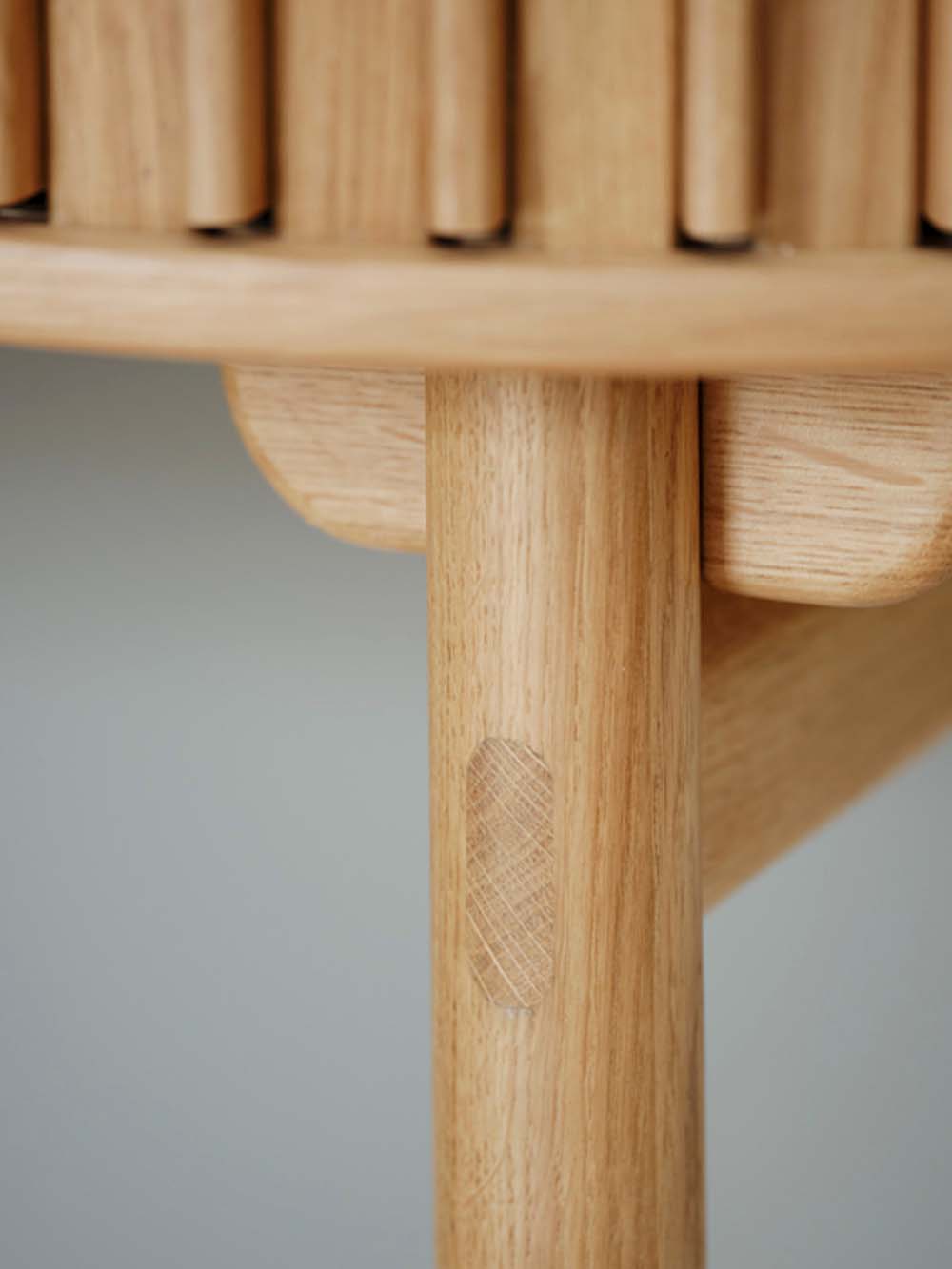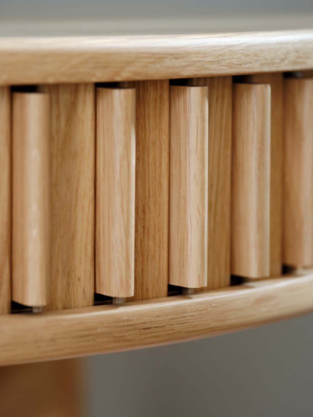 Korpuso medžiaga: natūraliu ąžuolo lukštu faneruota MDF plokštė.