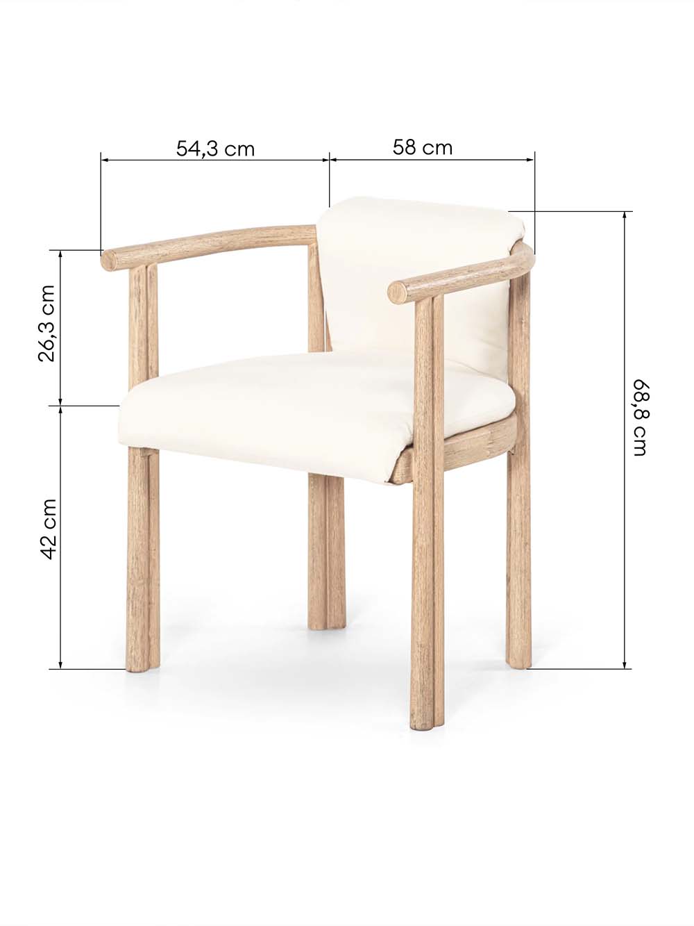 Lauko kėdė Nusa – elegantiškas natūralios akacijos medienos ir švelnių formų derinys, sukurtas patogiam poilsiui lauke. Apvalus atlošas, porankiai ir minkšta sėdimoji dalis su šviesaus smėlio spalvos pagalvėlėmis užtikrina komfortą, o lengvas, harmoningas dizainas lengvai dera terasoje, balkone ar sode.