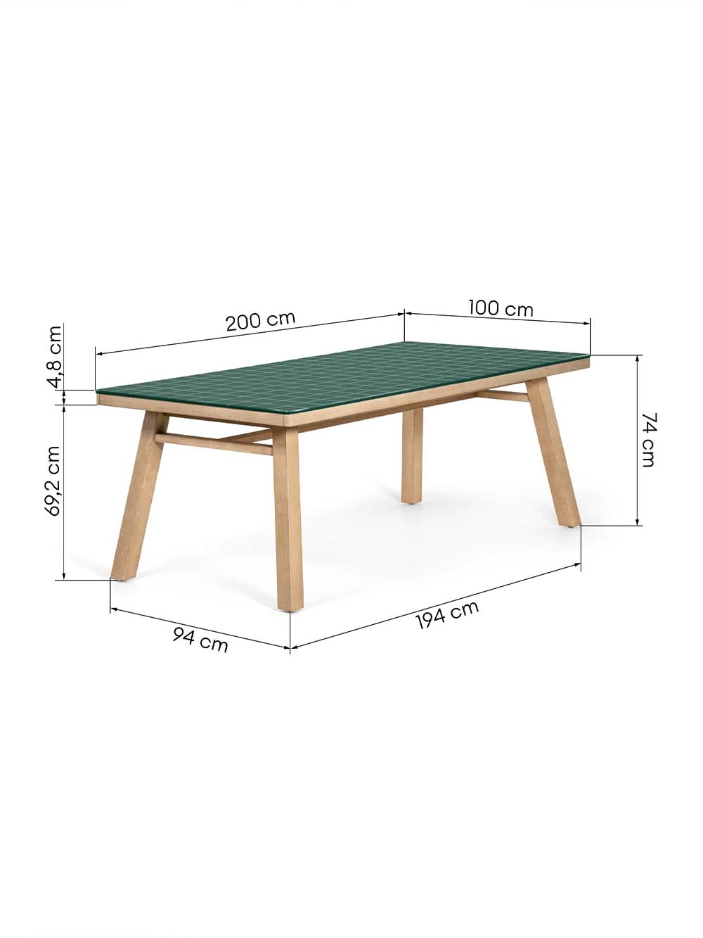 Išoriniai baldo matmenys: ilgis / plotis / aukštis, cm: 200/ 100 / 74.