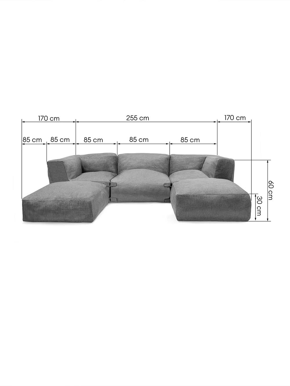 Modulinis lauko sofos komplektas D Bloom – tai modernus ir funkcionalus sprendimas jūsų lauko poilsio erdvei. Šis penkių dalių baldas leidžia lengvai keisti išdėstymą ir pritaikyti erdvę pagal savo poreikius. Aukštos kokybės pilkos spalvos audinys, apdorotas TPU danga, yra atsparus vandeniui, tačiau išlieka minkštas ir laidus orui. Komplekte esantis apsauginis uždangalas saugo nuo drėgmės, purvo ir lengvo bei vidutinio lietaus. Lengva konstrukcija suteikia mobilumo, o lipnios juostelės užtikrina stabilų modulių sujungimą ir leidžia kurti įvairias konfigūracijas, derinant su kitais „Bloom“ kolekcijos elementais. Tai praktiškas ir elegantiškas sprendimas šiuolaikiškam eksterjerui.
