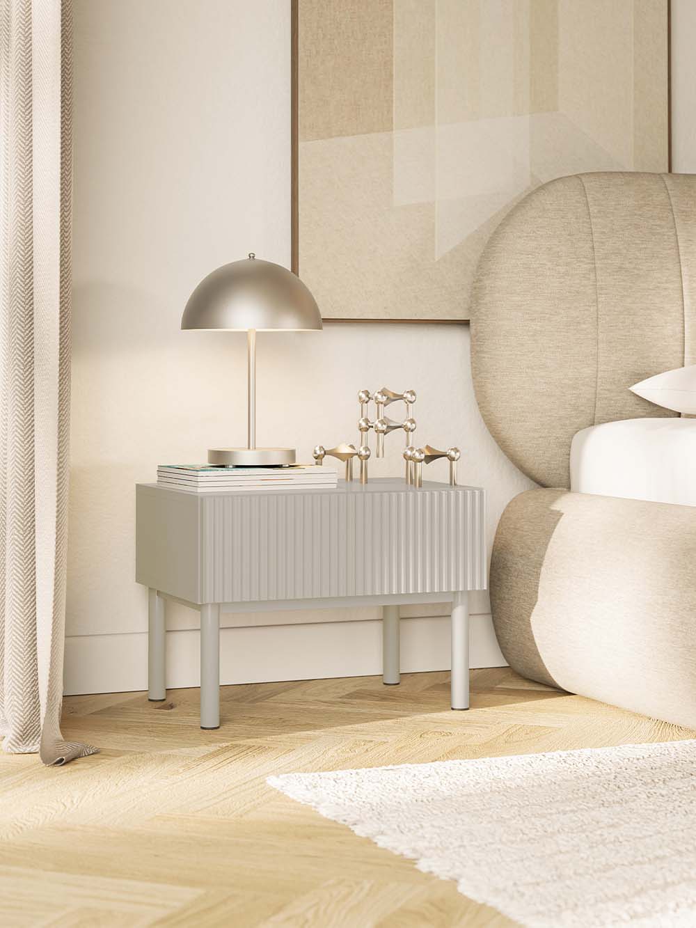 Stalčiaus priekio medžiaga: frezuota ir laminuota korpuso spalvos MDF plokštė.