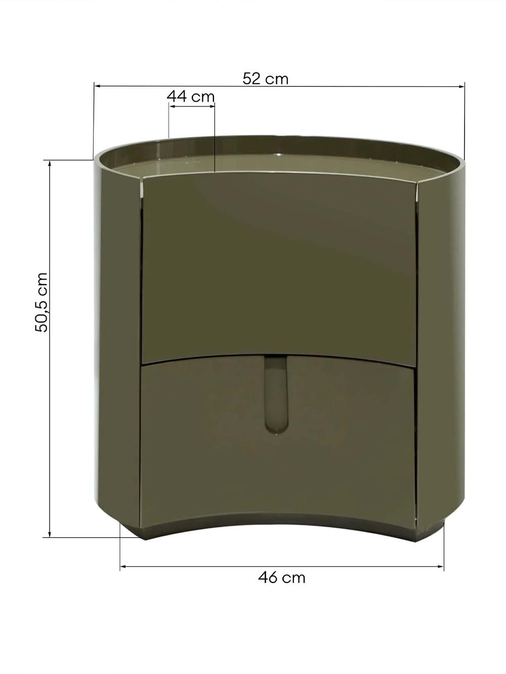 Išoriniai baldo matmenys: ilgis / plotis / aukštis, cm: 52 / 44 / 50,5.