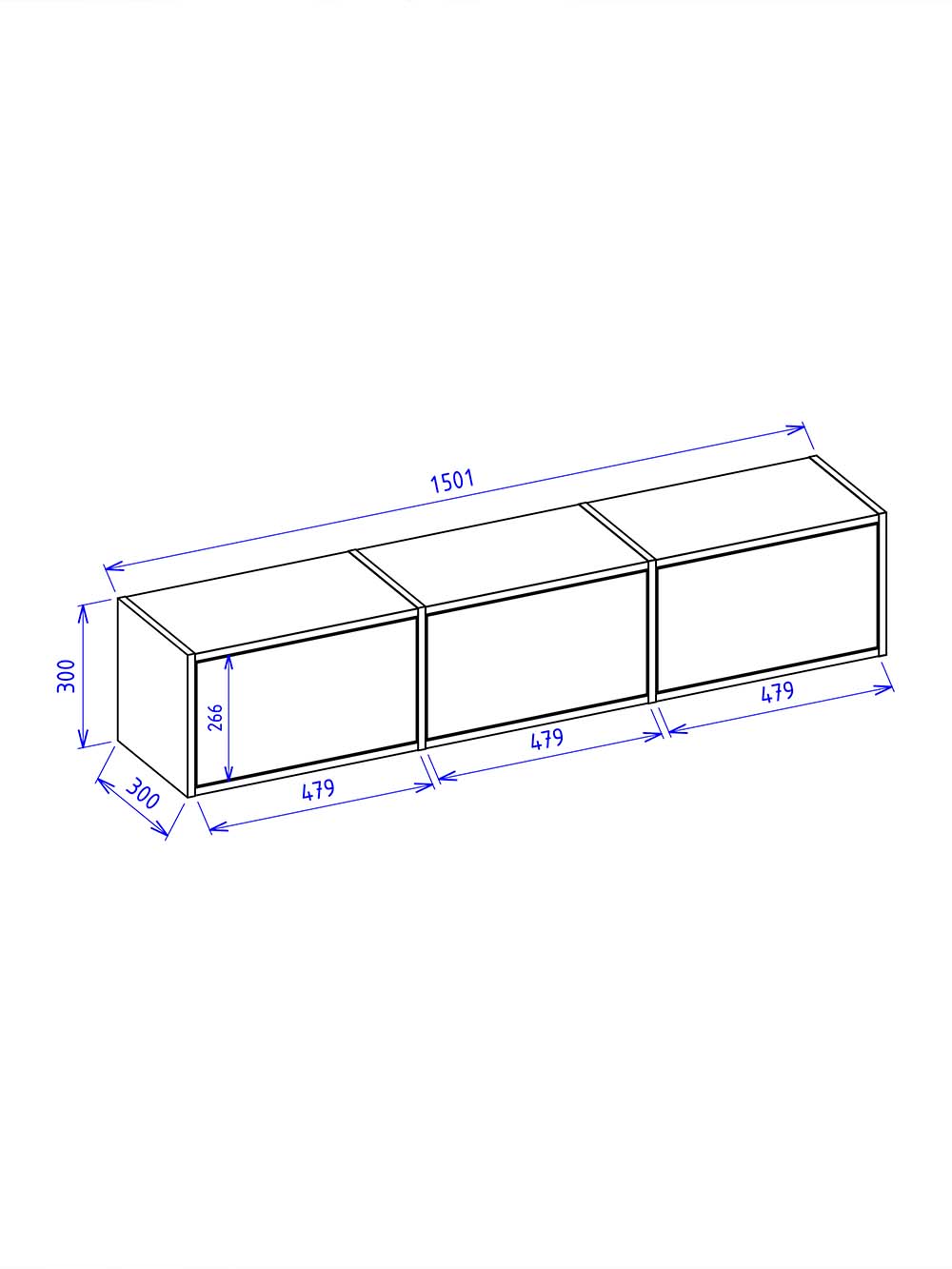 Išoriniai baldo matmenys: plotis / gylis / aukštis, cm: 150,1 / 30 / 30.