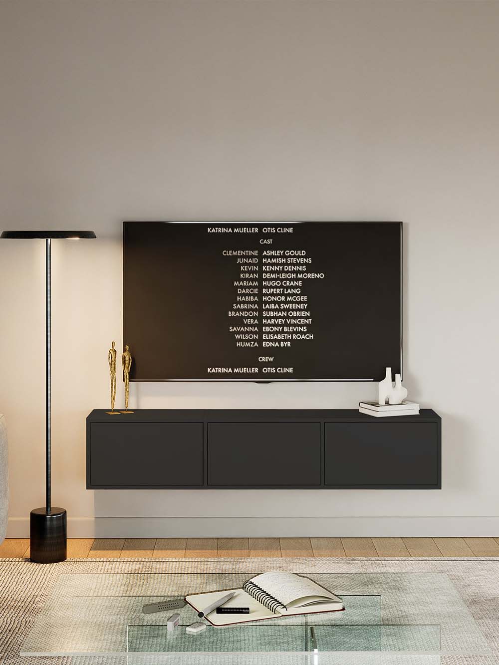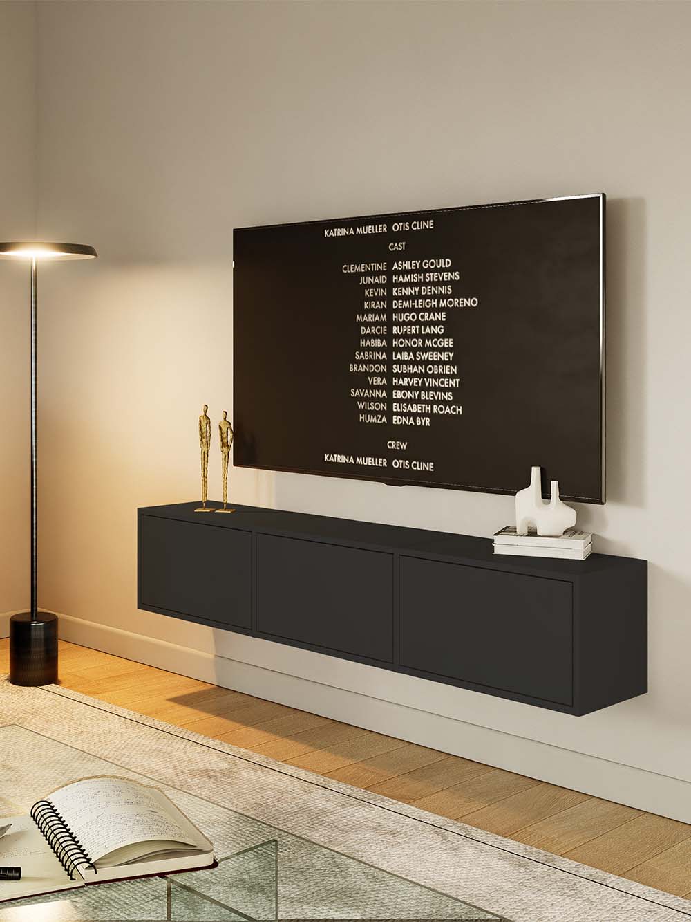 Pakabinama TV komoda Aris, 150 cm, juoda