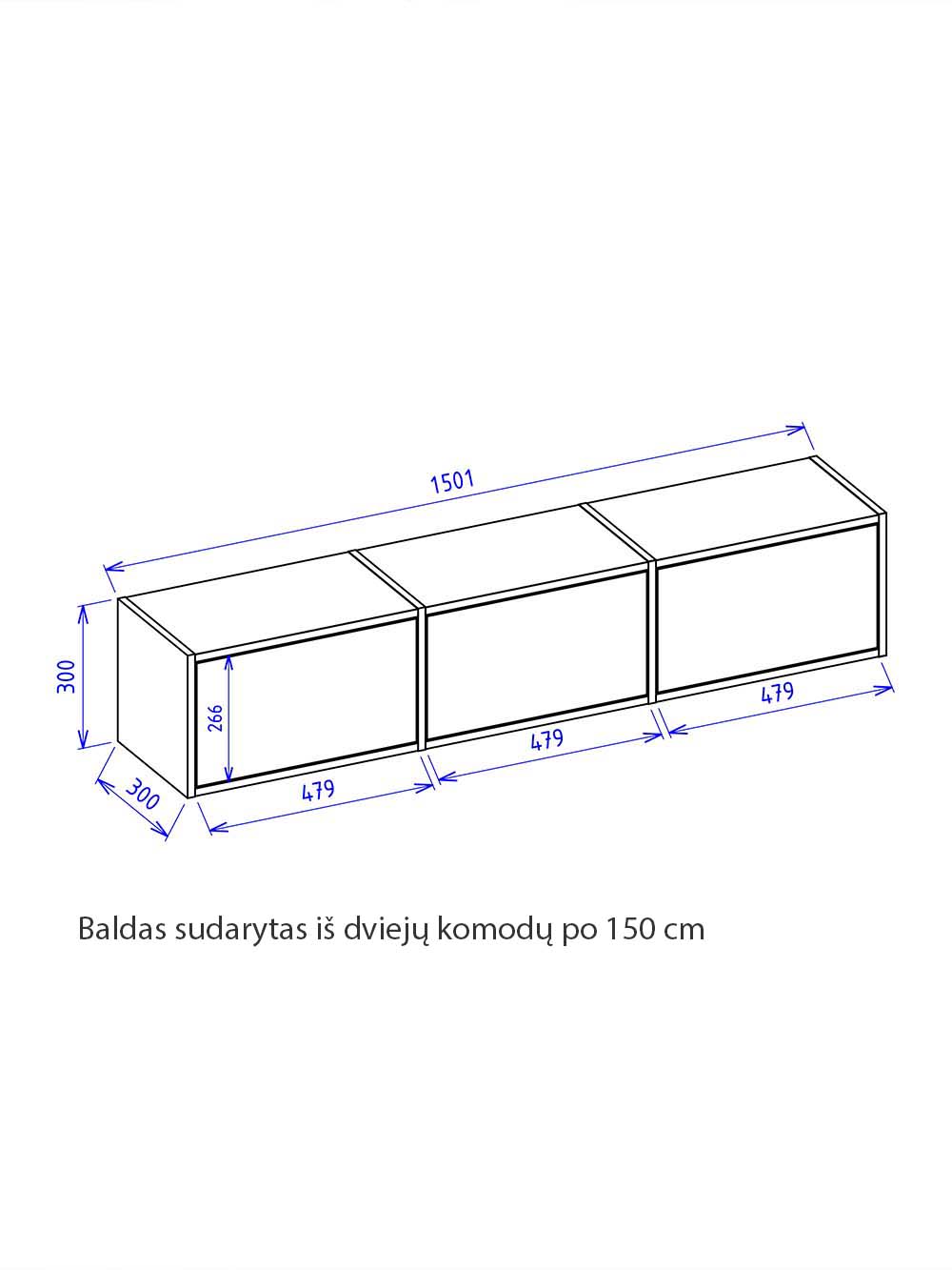 Papildoma informacija: baldas sudarytas iš dviejų komodų po 150 cm.