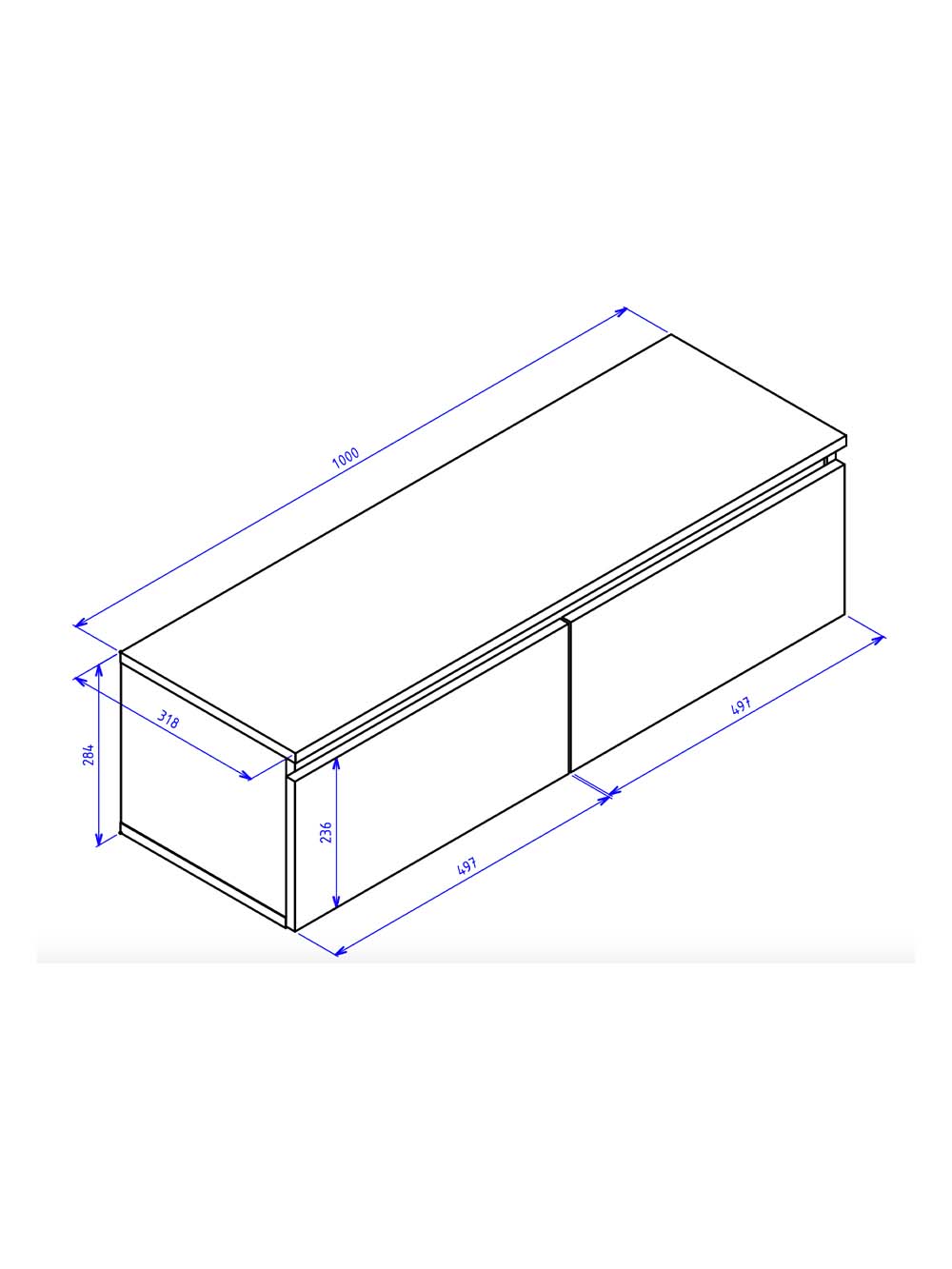 Išoriniai baldo matmenys: plotis / gylis / aukštis, cm: 100 / 31,8 / 28,4.