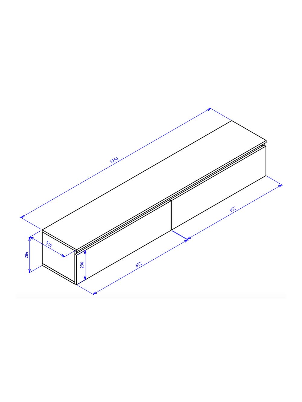 Išoriniai baldo matmenys: plotis / gylis / aukštis, cm: 175 / 31,8 / 28,4.