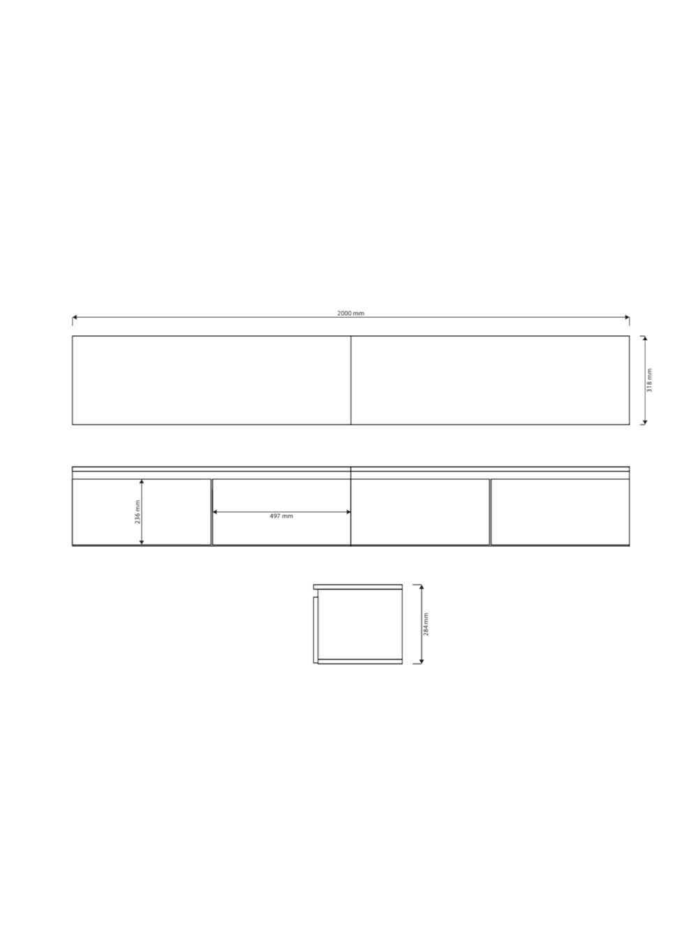 Išoriniai baldo matmenys: plotis / gylis / aukštis, cm: 200 / 31,8 / 28,4.