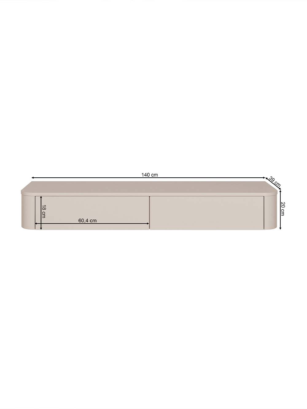Išoriniai baldo matmenys: plotis / gylis / aukštis, cm: 140 / 39 / 20.