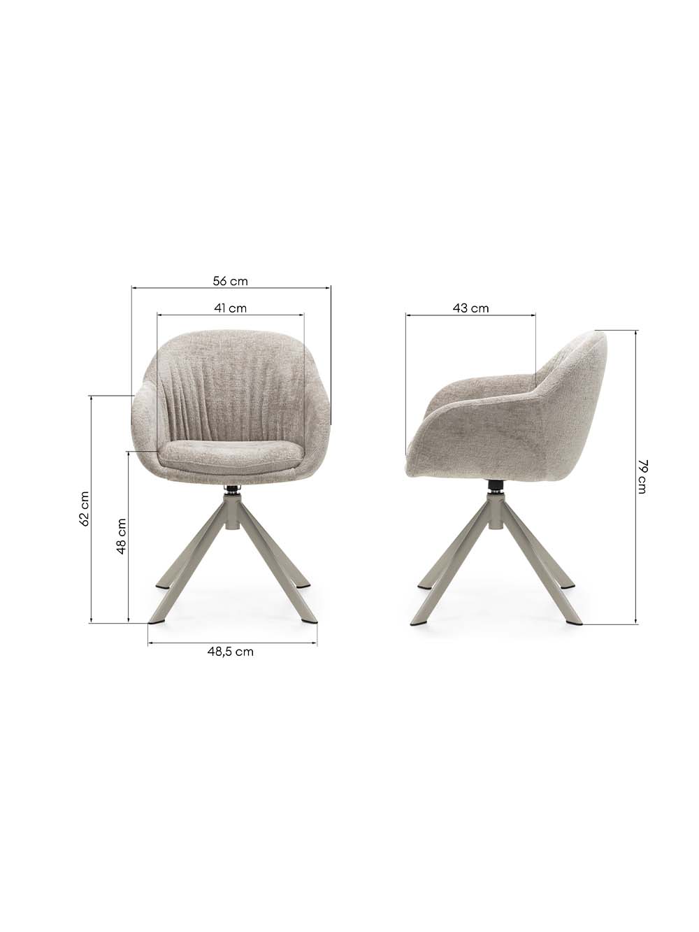 Išoriniai baldo matmenys: plotis / gylis / aukštis, cm: 56 / 48,5 / 79.