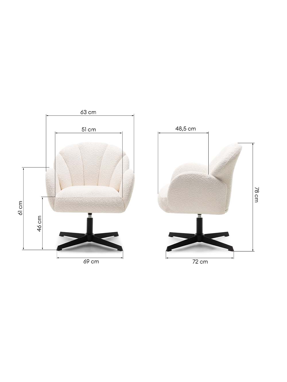 Išoriniai baldo matmenys: plotis / gylis / aukštis, cm: 69 / 72 / 78.