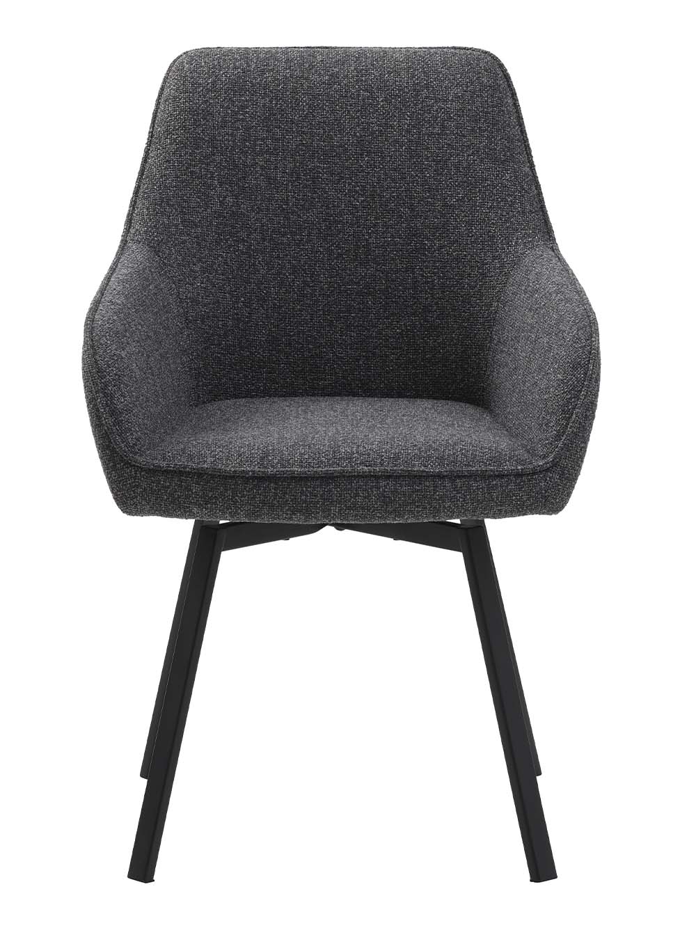 Pasukama valgomojo kėdė Corin – tai modernios estetikos baldas, išsiskiriantis švariomis linijomis ir subtiliai suformuota silueto forma. Tamsiai pilkas audinys kuria solidų, universaliai derantį vaizdą, o juodas matinis metalinis rėmas suteikia stabilumo ir išlaiko minimalistinį charakterį. Ergonomiškas atlošas, patogi sėdimoji dalis ir pasukimo funkcija užtikrina maksimalų komfortą tiek kasdienėms vakarienėms, tiek ilgesniam sėdėjimui. Puikiai tinka moderniam, skandinaviškam ar industriniam interjerui, naudojama valgomojo ar darbo zonoje.