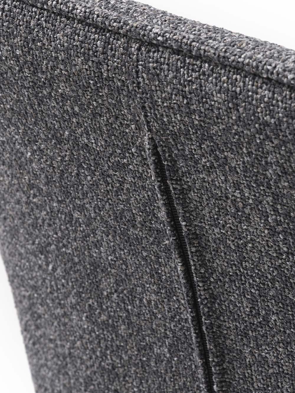 Apie audinį: HEVRE – tai inovatyvus audinys, pagamintas iš dviejų skirtingų verpalų rūšių. Ploni siūlai sukuria tankų, tvirtą pagrindą, o storesni, pūkuoti siūlai suteikia audiniui išskirtinę bouclé faktūrą su subtiliomis kilputėmis. Dėl tokios struktūros audinys yra itin malonus liesti, tvirtas ir atsparesnis užsikabinimams nei įprasti bouclé audiniai. Derinant kelių spalvų pluoštus, sukuriamas subtilus, gylio ir prabangos pojūtį suteikiantis efektas.