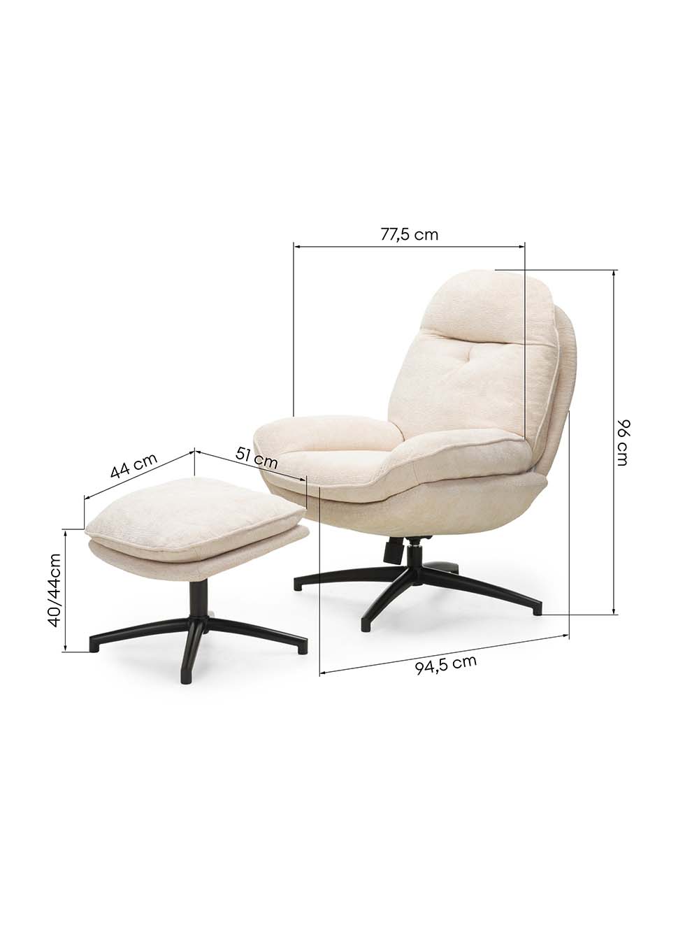 Išoriniai baldo matmenys: plotis / gylis / aukštis, cm: 77,5 / 94,5 / 96.