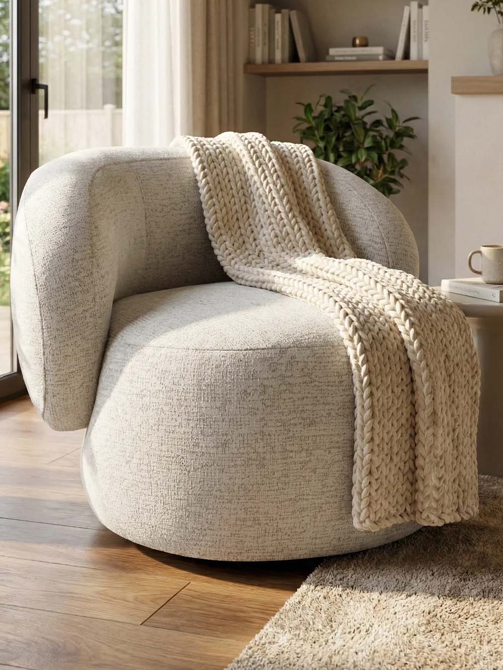 Apie audinį: Bella – tai minkštas šenilinis audinys su išraiškinga, reljefine, pynimą primenančia tekstūra, suteikiančia paviršiui gylio ir subtilaus dekoratyvumo. Audinys patvarus, atsparus dėvėjimuisi, mažai linkęs burbuliuotis, todėl ilgai išlaiko estetinę išvaizdą ir puikiai tinka intensyviai naudojamiems baldams.