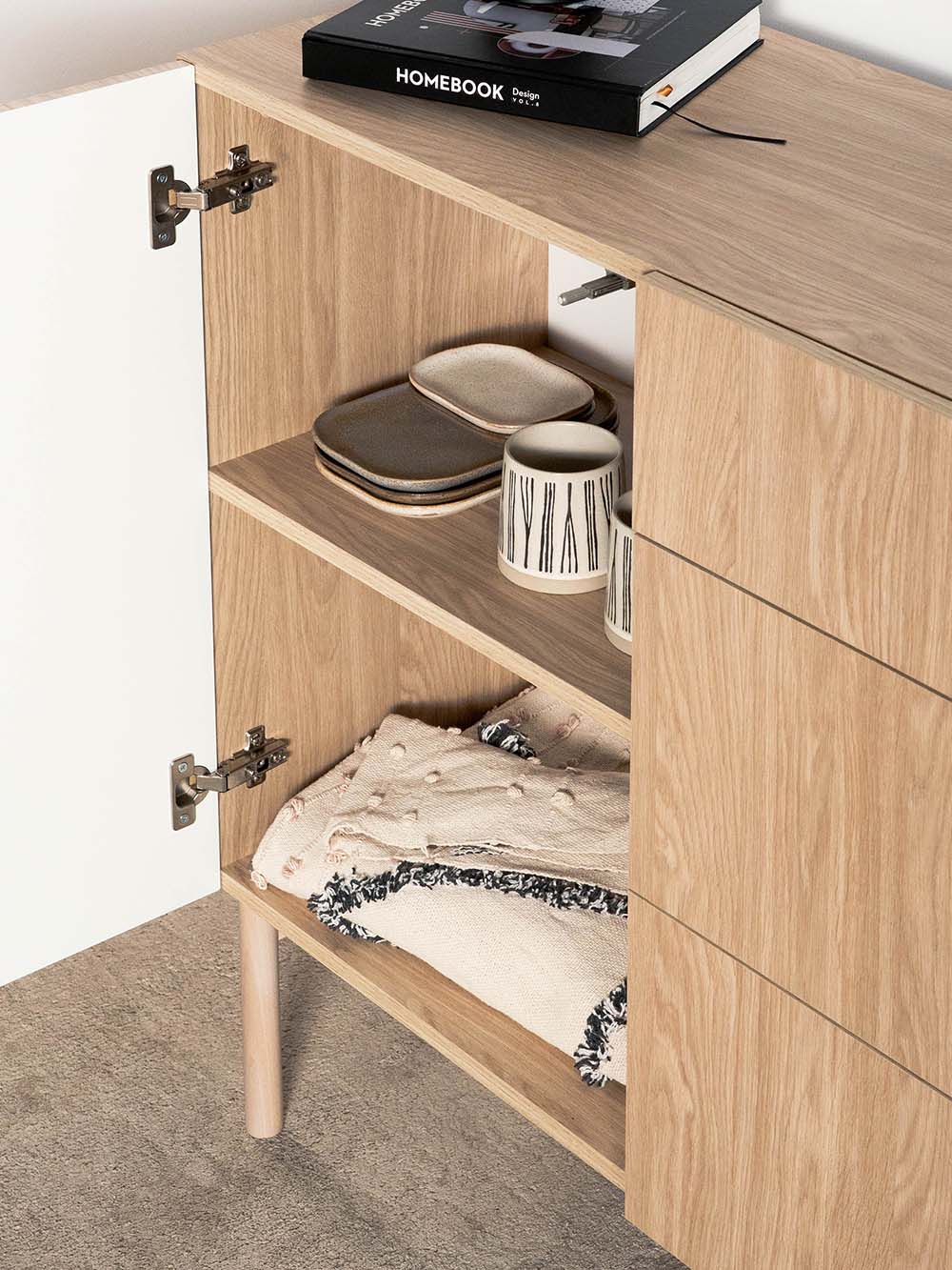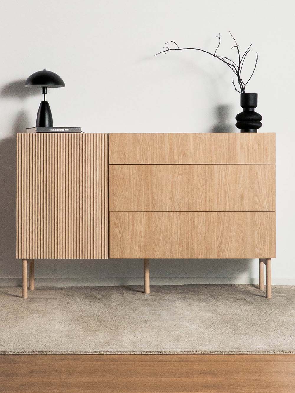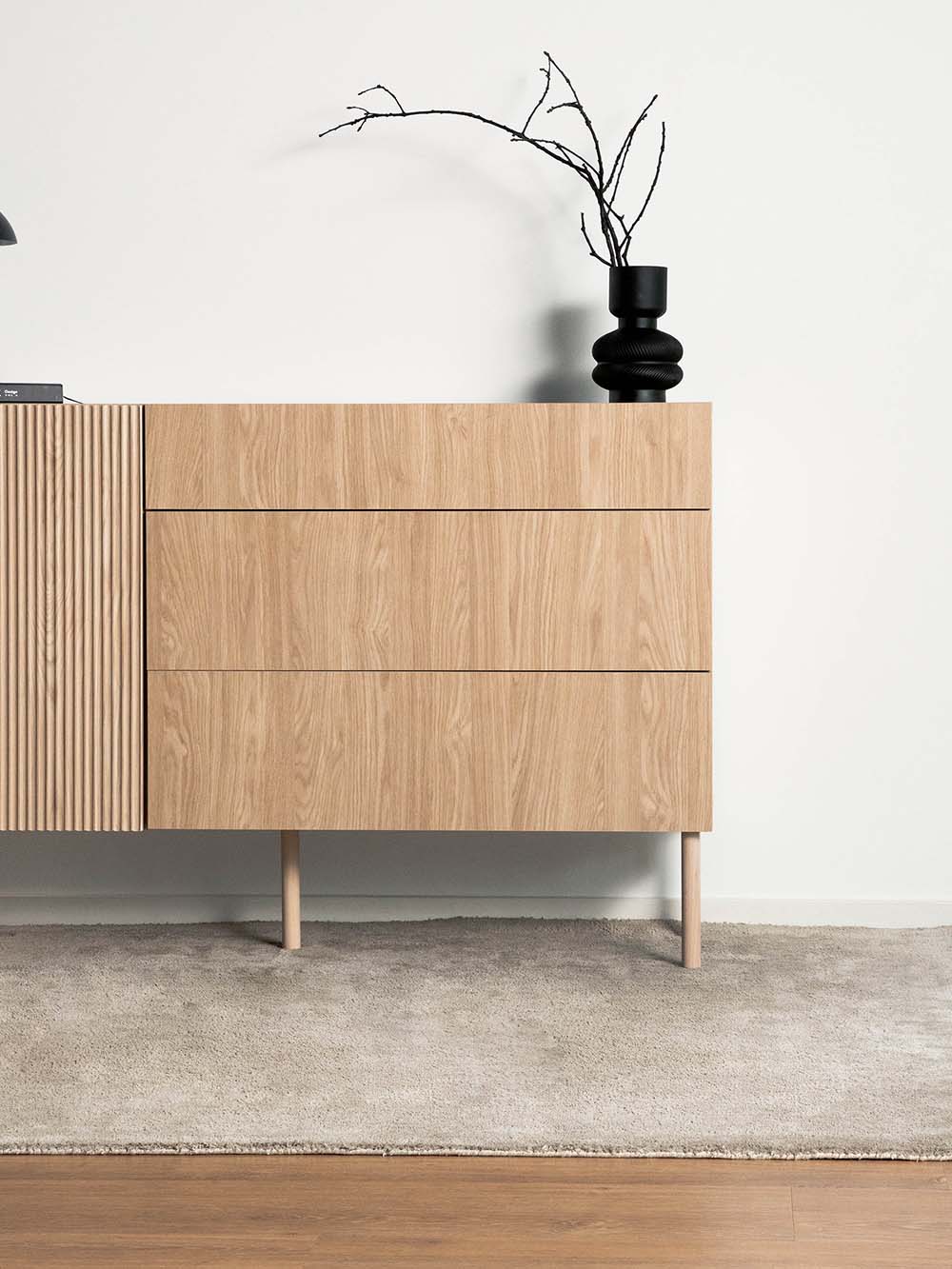 Nolti kolekciją puikiai pritaikysite skandinaviškame arba šiuolaikiniame interjere. Išskirtinis Nolti kolekcijos bruožas – išfrezuoti korpuso fasadai bei natūralios medienos įvaizdį sukuriančios MLDP plokštės.